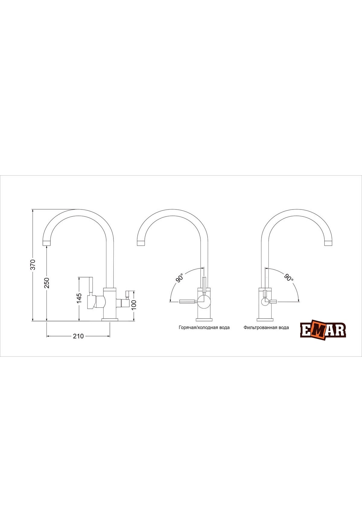 Смеситель имеет монорычажное управление (рычаг на подачу проточной воды и рычаг на подачу питьевой воды). Ручка смесителя удобна для регулировки подачи воды. Смеситель легко встраивается в кухонную мойку.
