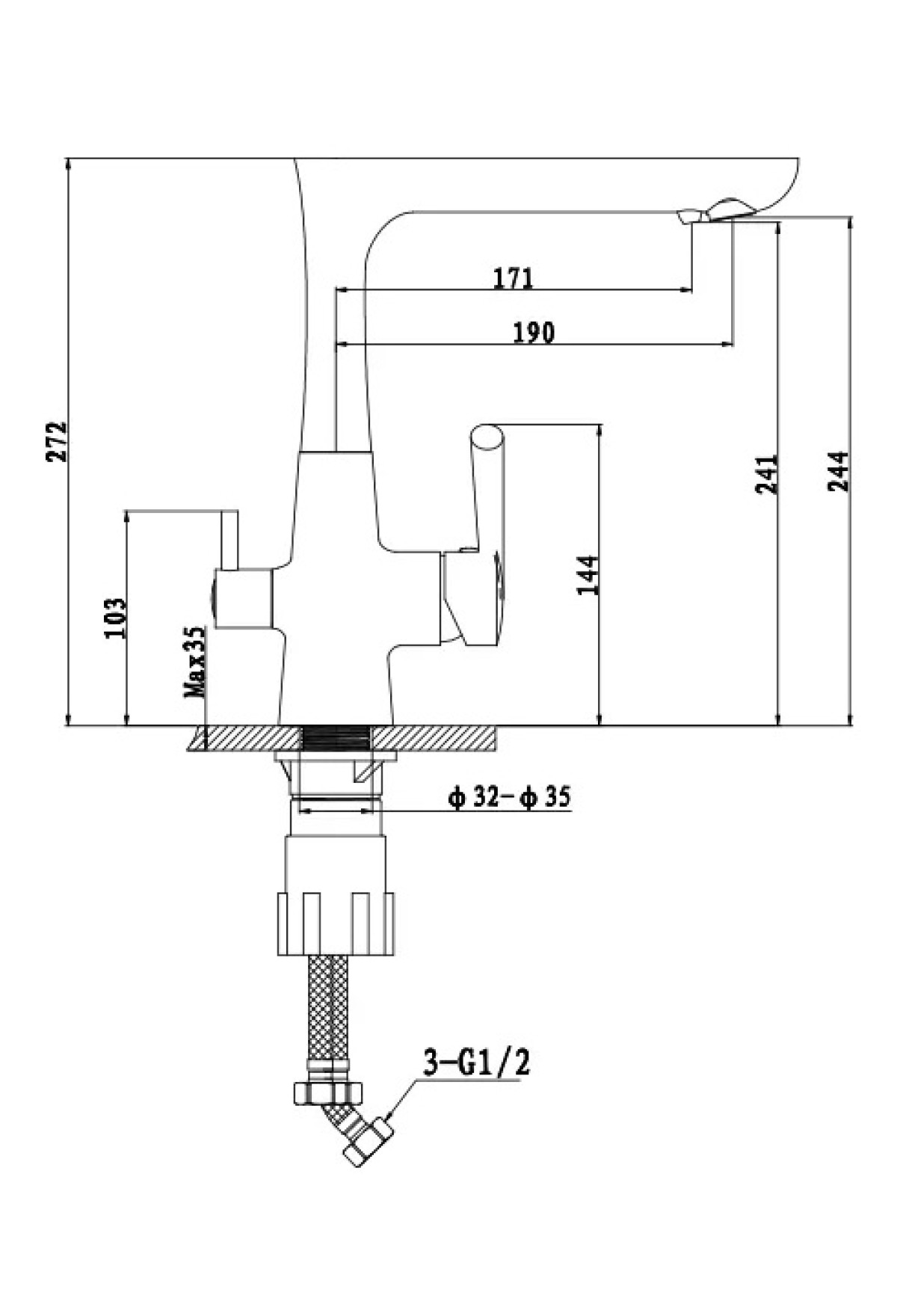 Смеситель для кухни Г-обр. с краном питьевой воды D-40мм