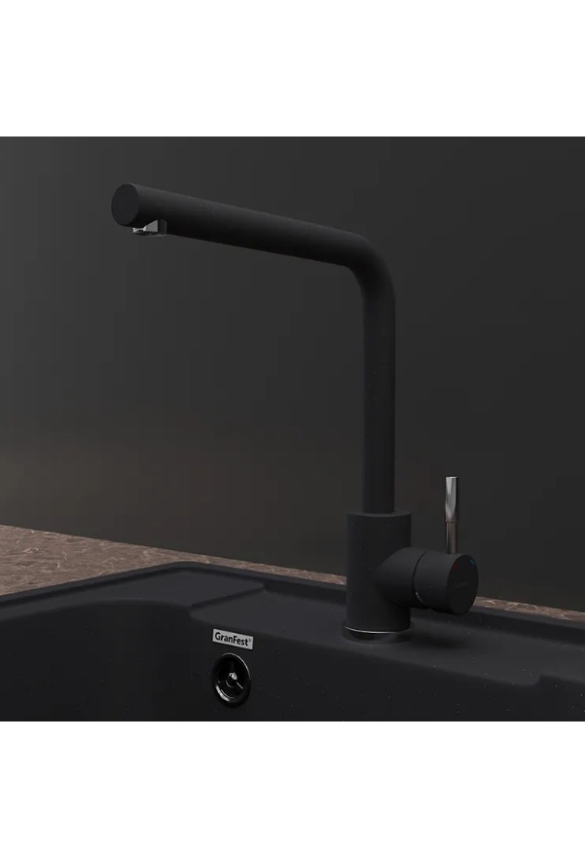 Поверхность смесителя окрашена в цвета кварцевых моек GranFest QUARZ.