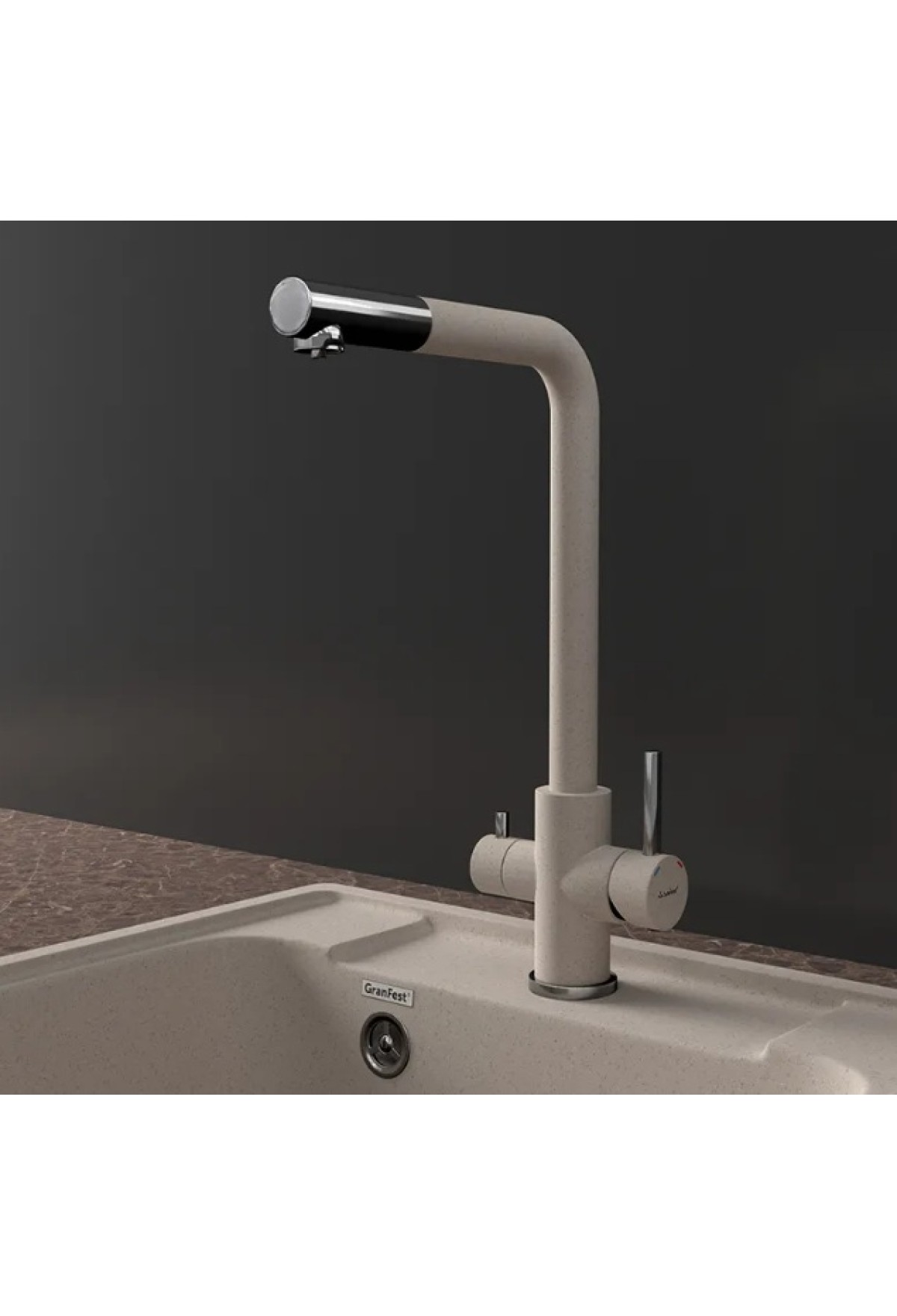 Поверхность смесителя окрашена в цвета кварцевых моек GranFest.