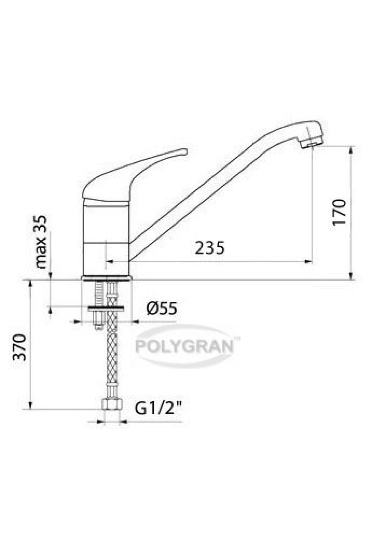 Смеситель кухонный низкий «ЭКО» в цвет мойки Polygran