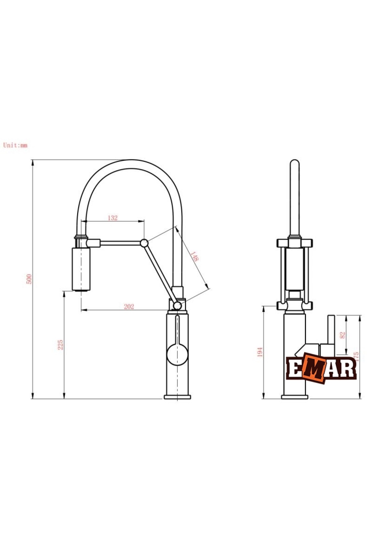 Технические характеристики Смеситель высокий излив ECB-7012 черный EMAR