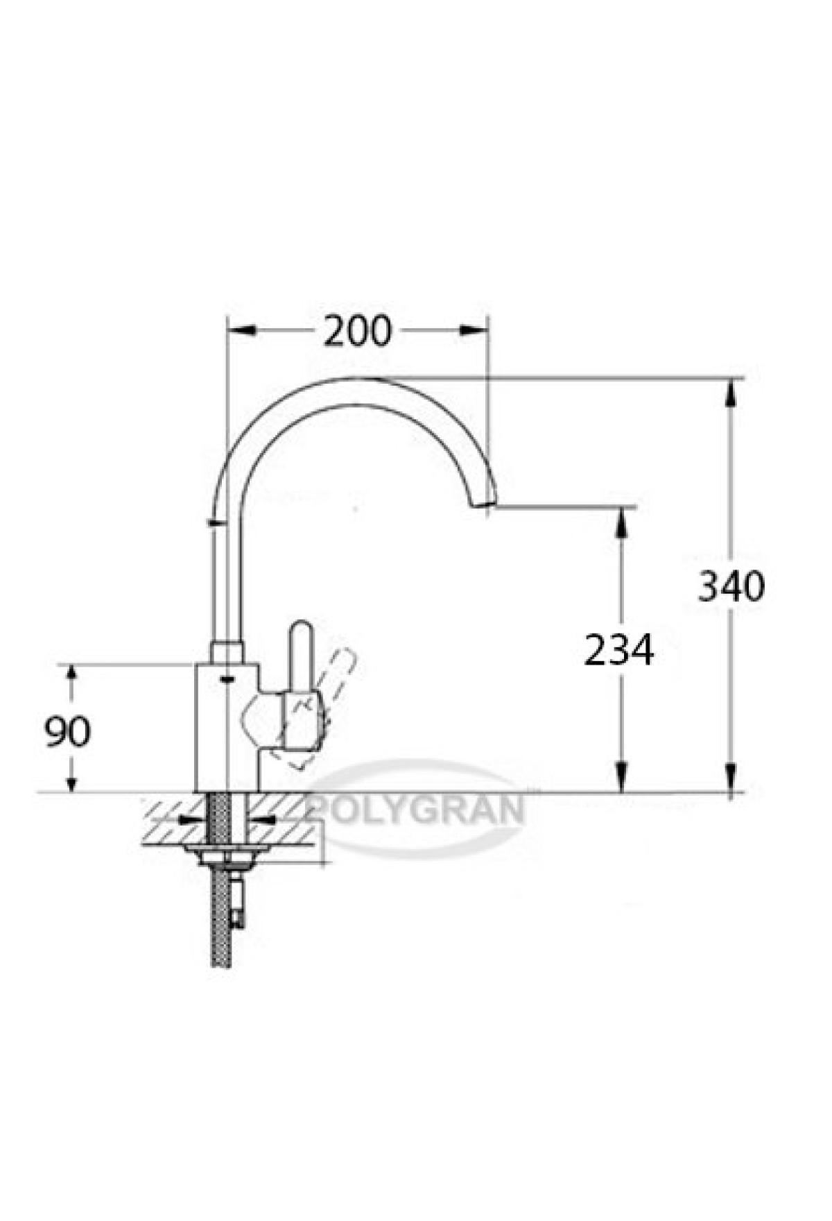 Смеситель кухонный «Элара» в цвет мойки Polygran