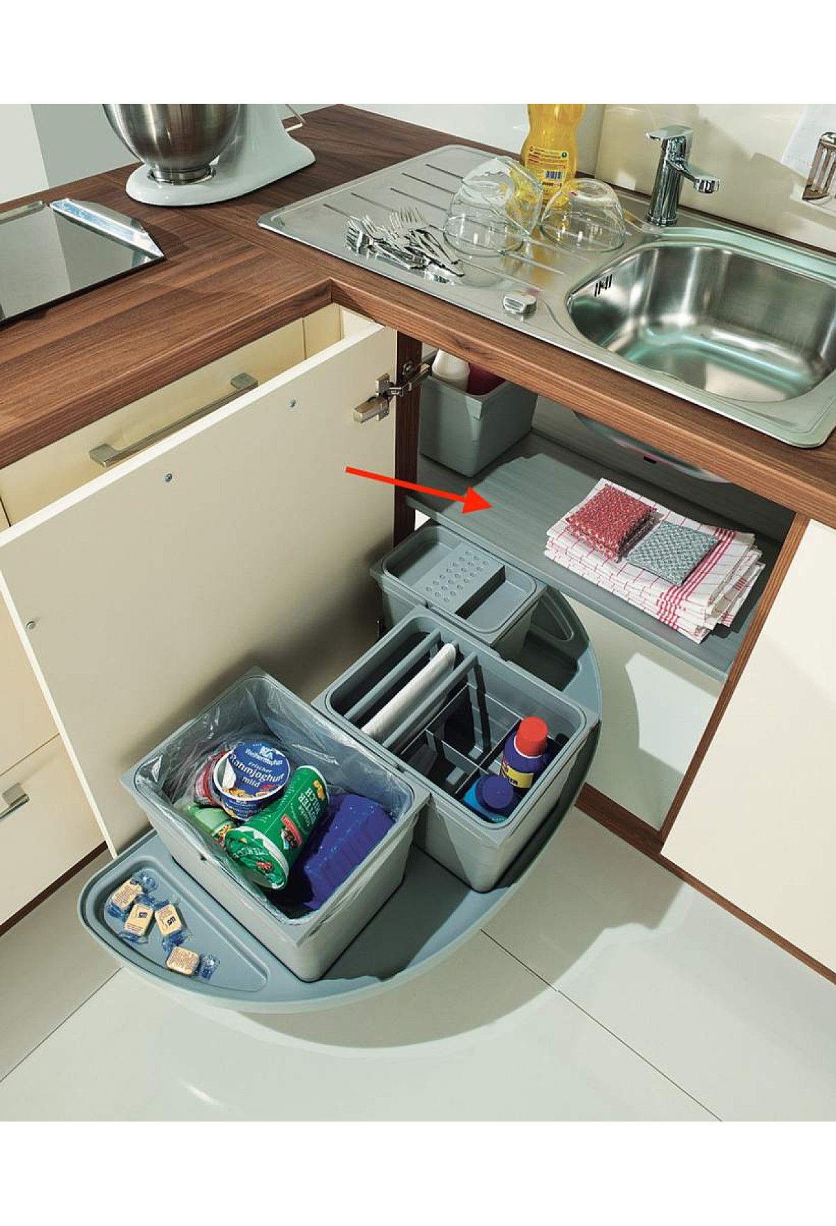 Стационарная составная полка-перегородка для крепления на стенки шкафа (в качестве общей крышки для карусели). Функциональный аксессуар. Заднюю часть можно снять, чтобы обойти обвязку мойки или другие коммуникации.