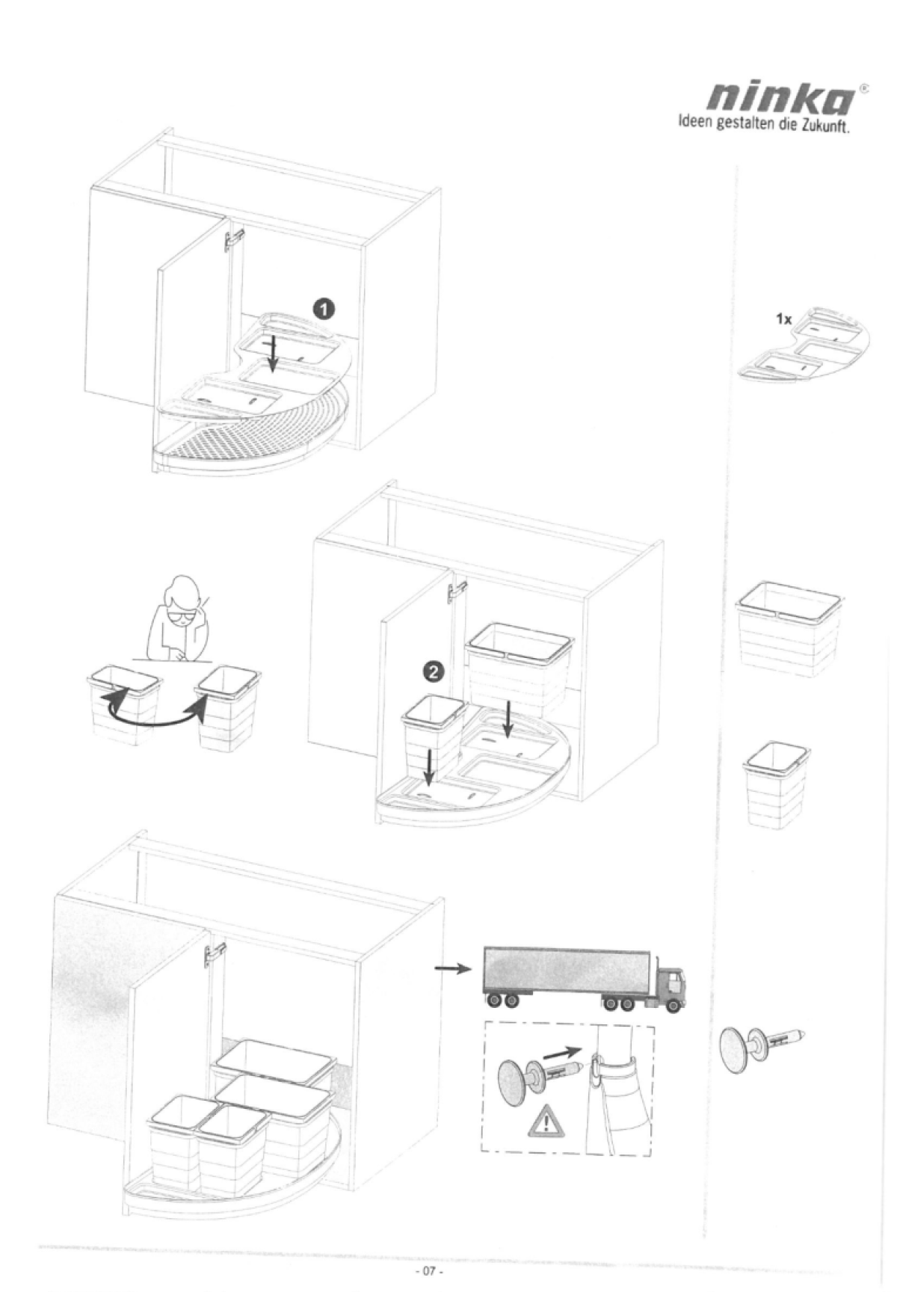 Комплектация: карусельно-выдвижной Механизм с крепежами, 1 съемная полка, вставка в полку с посадочными гнездами для ведер, 1 ведро 12л, 2 ведра 5,5л.