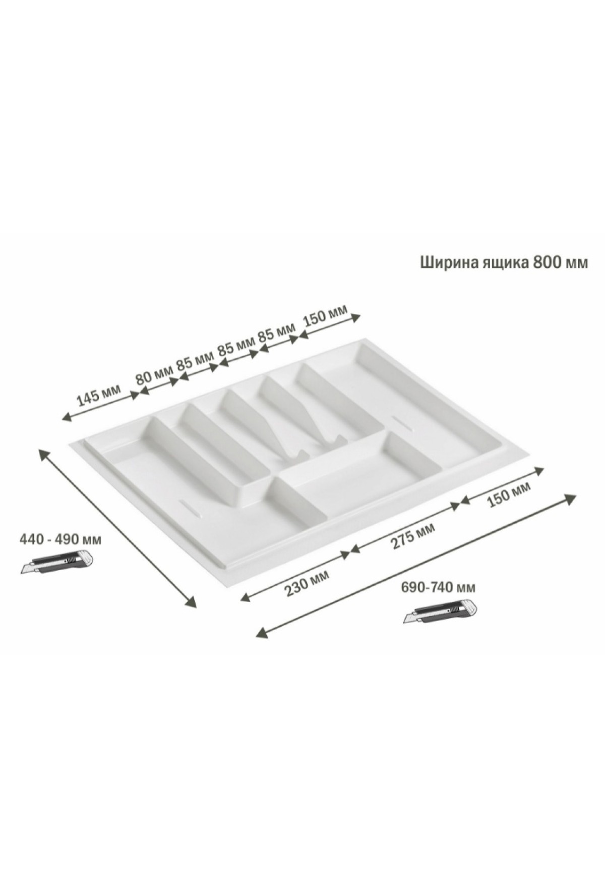 Лоток L 800 мм белый – кухонный аксессуар, необходимый практически в любом доме. Лоток позволяет удобно рассортировать внутри кухонного ящика ложки, вилки, ножи и другие постоянно используемые столовые приборы. Лоток специально подбирается под размеры конкретного ящика стола или кухонного гарнитура.