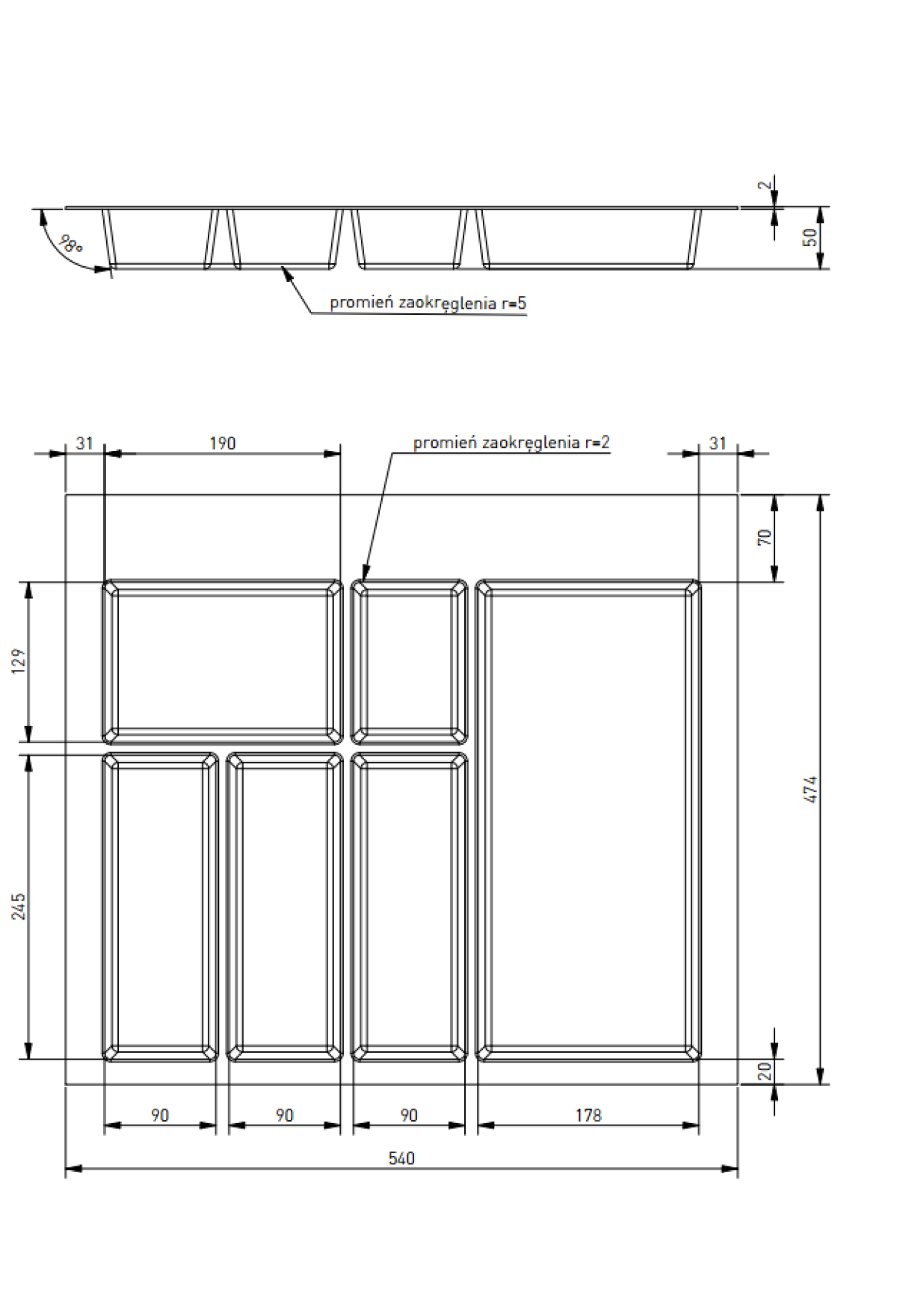 Лоток специально подбирается под размеры конкретного ящика стола или кухонного гарнитура. При необходимости можно самостоятельно уменьшить размеры лотка, подрезав его по месту.