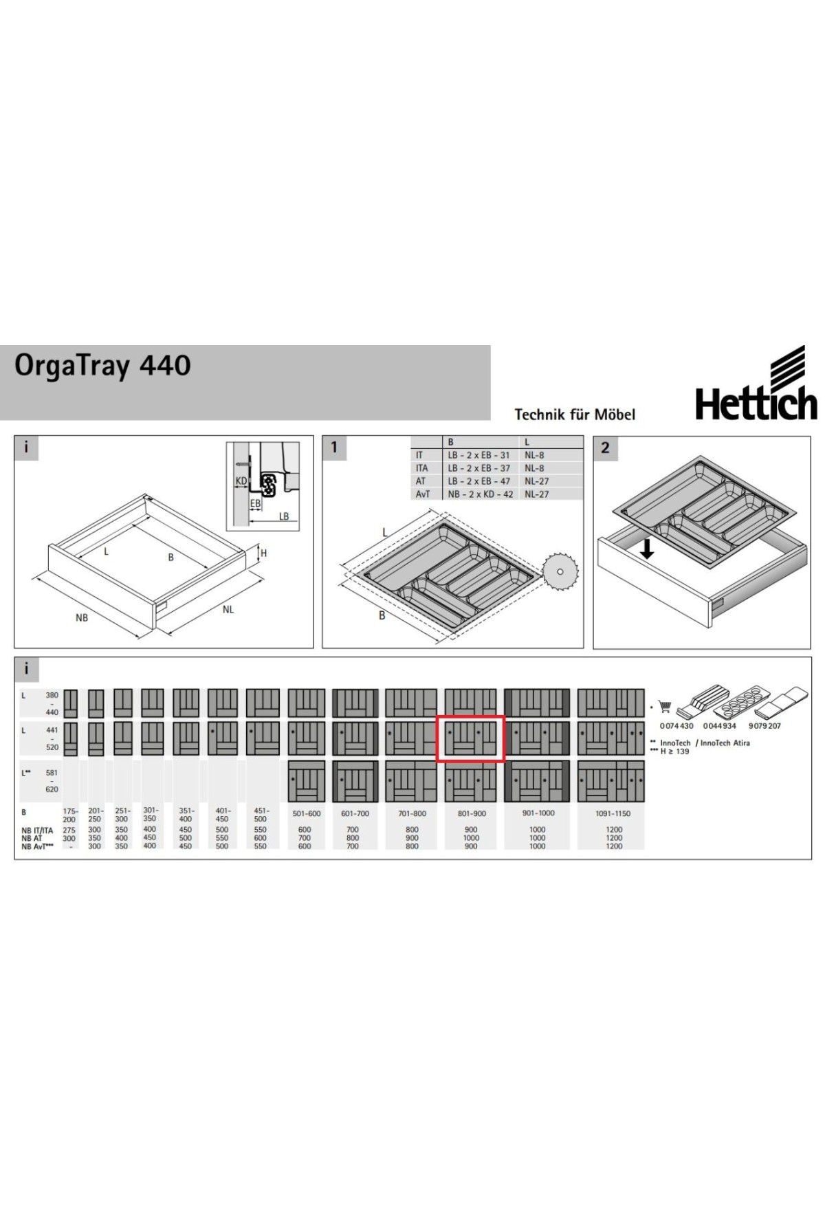 - Лоток для столовых приборов OrgaTray 440 для ящиков ArciTech 900*441-520мм антрацит 9195002 Hettich