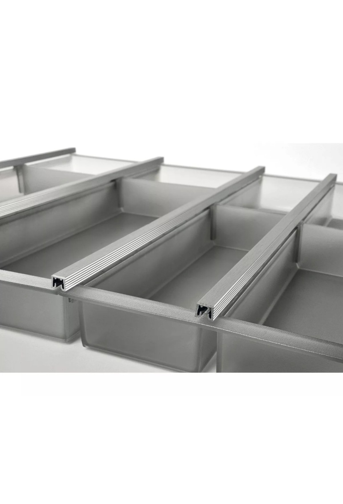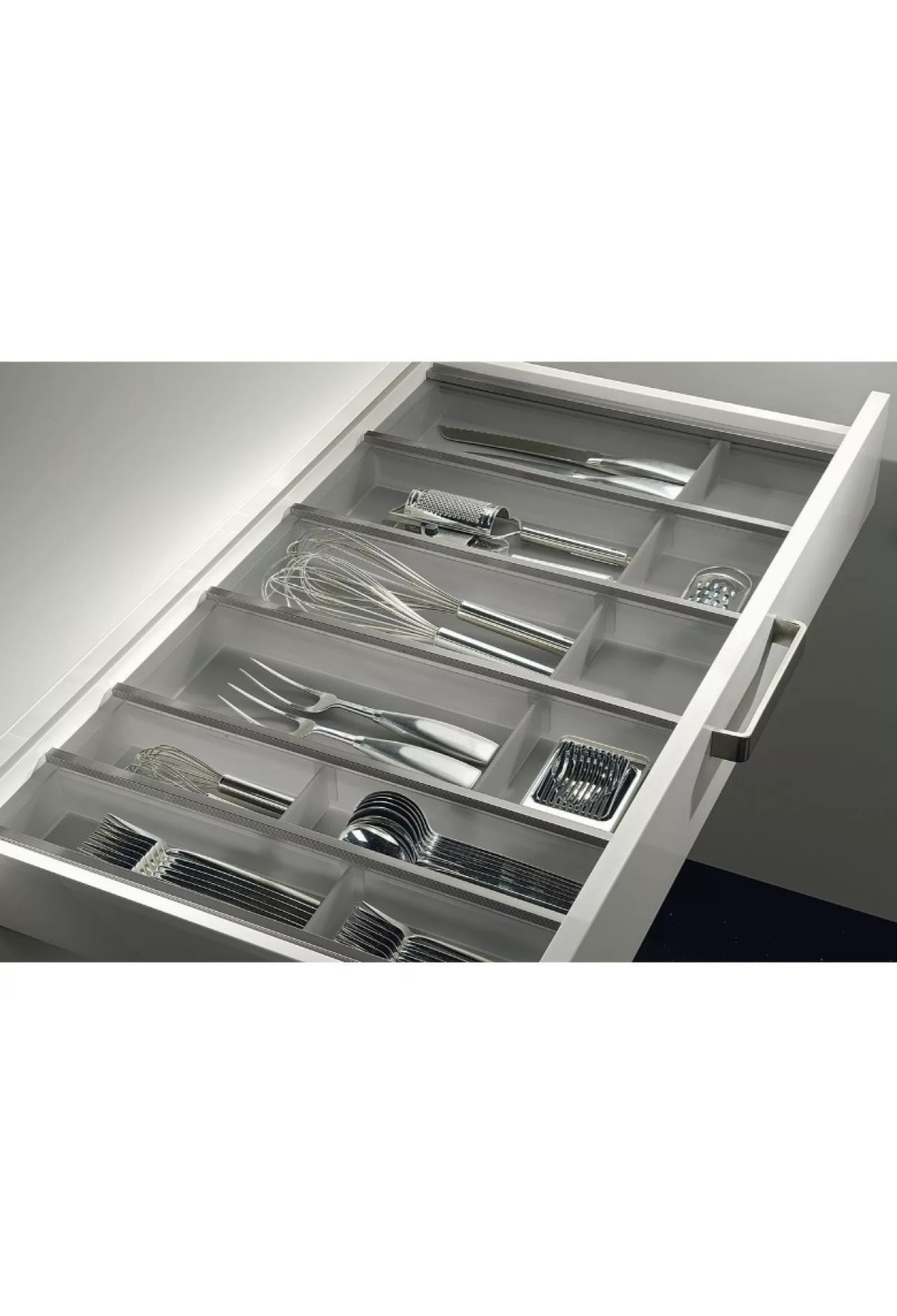 Элегантные лотки для современной кухни: алюминиевый профиль и высококачественный тонированный пластик. Гигиеничный, легкий в уходе материал. Лотки можно мыть в посудомоечной машине при t до 50°C. Поперечные перегородки передвигаются и устанавливаются в размер хранимых предметов. 2 варианта установки лотка: на всю ширину ящика или частично. Для установки лотка на полную ширину ящика в комплект включены 2 уплотнительных профиля, которые фиксируют лоток между боковыми стенками ящика и предохраняют их от царапин. За счет использования профилей ширина лотка увеличивается на 5 - 20мм. Лоток также можно устанавливать в ящик большей, чем указано в наименовании, ширины. В этом случае необходимо доукомплектовать лоток профилем-боковиной (одним или двумя). Боковина закроет торец лотка, а ее силиконовое основание обеспечит устойчивость лотка в ящике.