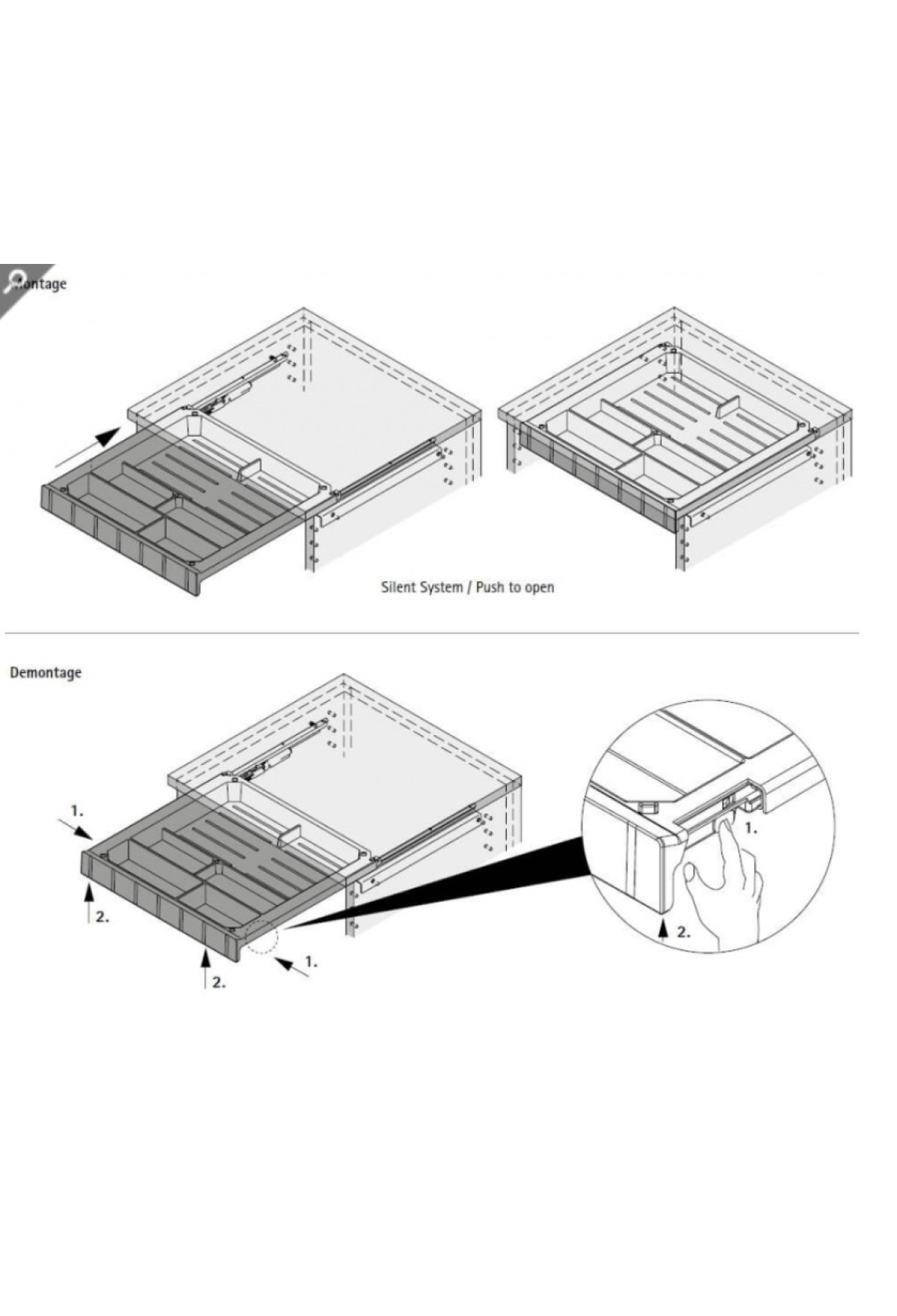 Лоток для направляющих ящиков Quadro 12 (с бесшумной системой открывания от нажатия)