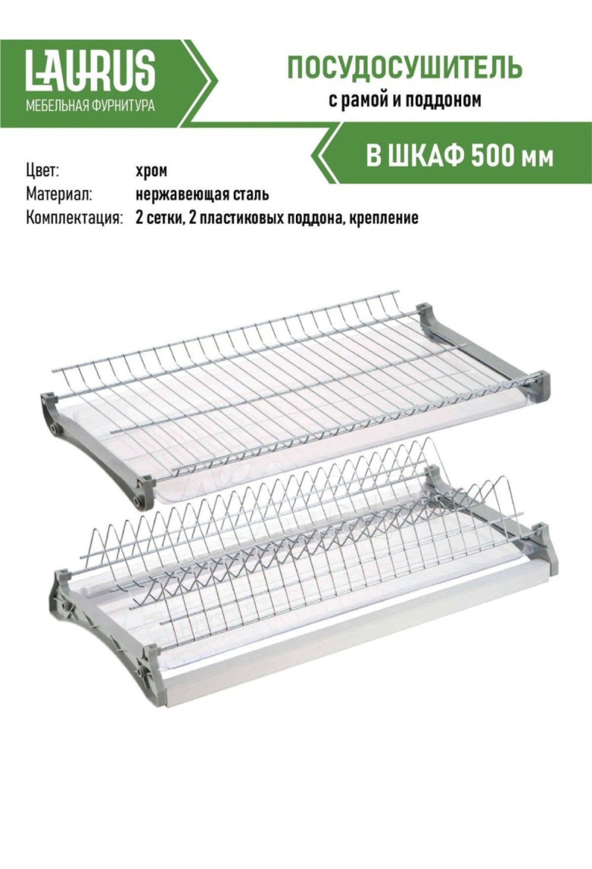 - Посудосушитель 500мм хром с рамой и поддоном (Вариант 3)