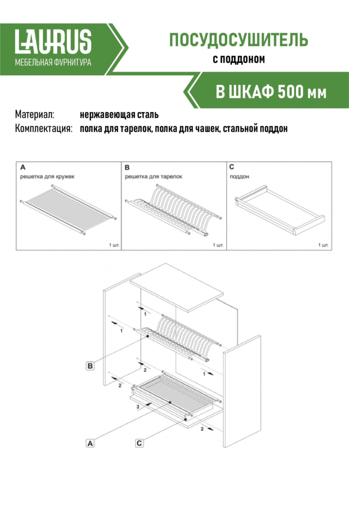 Технические характеристики Посудосушитель 500мм нержавеющая сталь с поддоном
