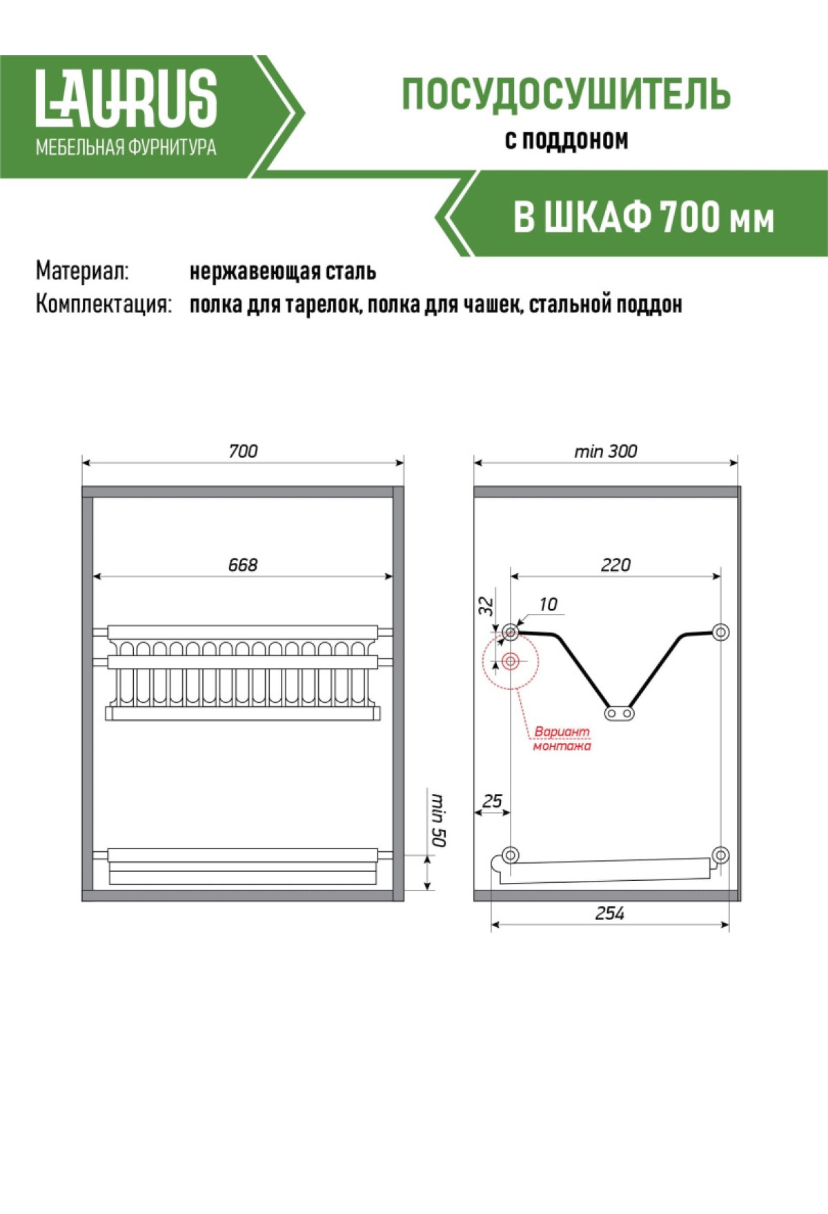 Технические характеристики Посудосушитель 700мм нержавеющая сталь с поддоном
