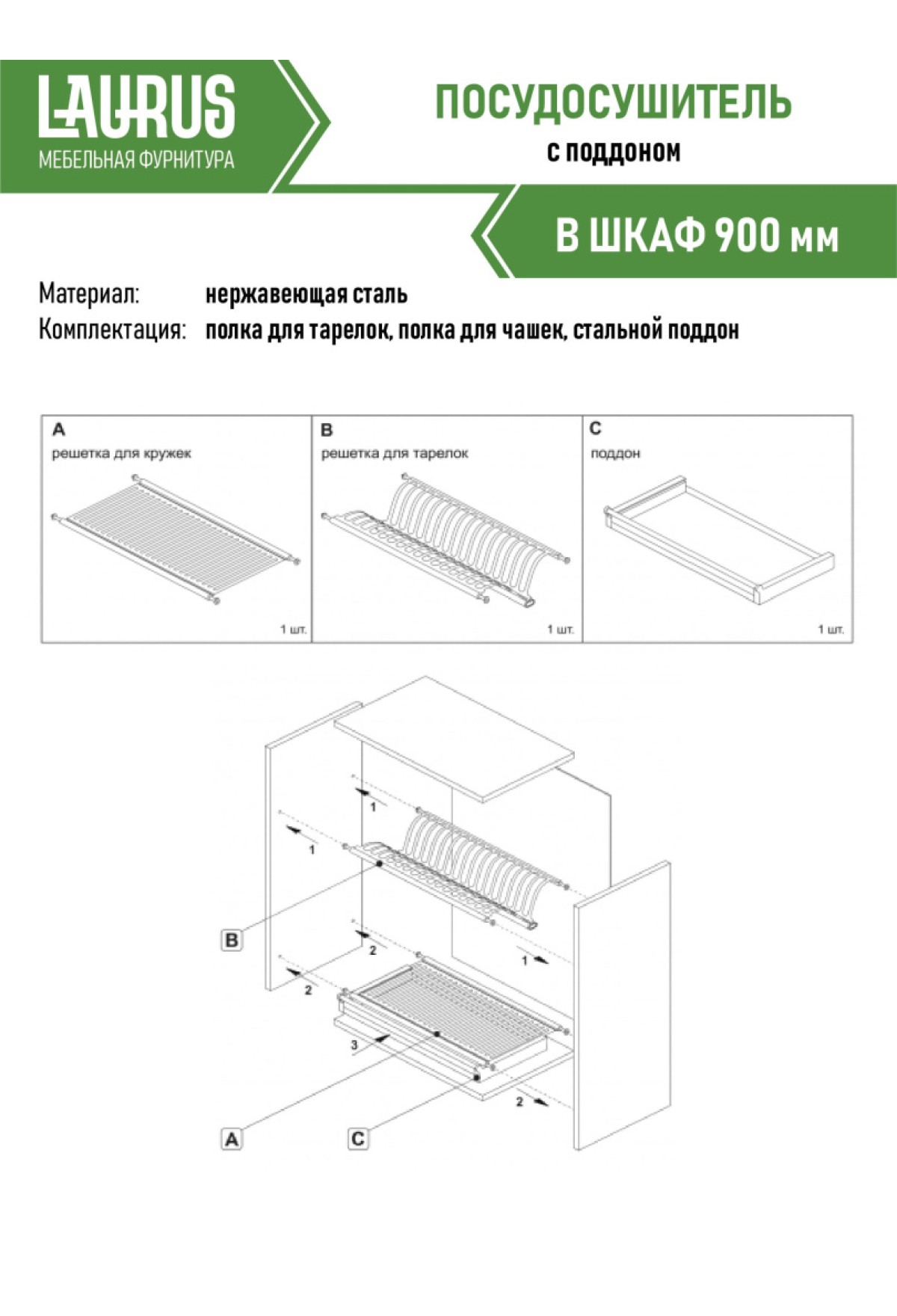 Технические характеристики Посудосушитель 900мм нержавеющая сталь с поддоном