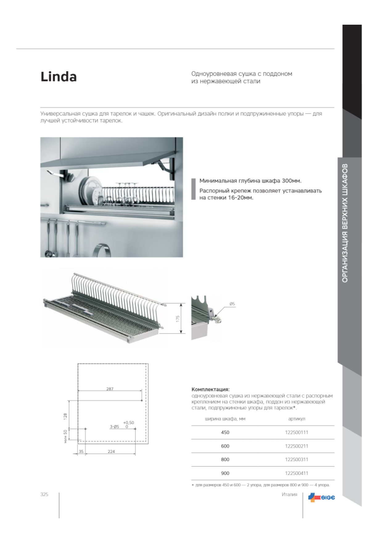 Технические характеристики посудосушитель (нержавейка) 800мм, нержавеющая сталь, 1 уровень, SIGE/122S00311