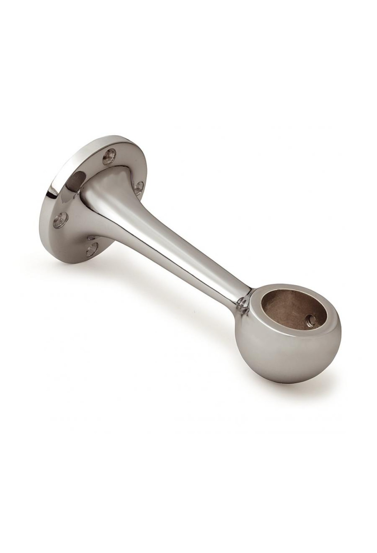 R50 А Держатель - опорный кронштейн, используемый при сборке торгового оборудования из труб диаметром 25 мм. Представляет собой закрытое дистанционное крепление, оснащенное фиксатором для трубы.