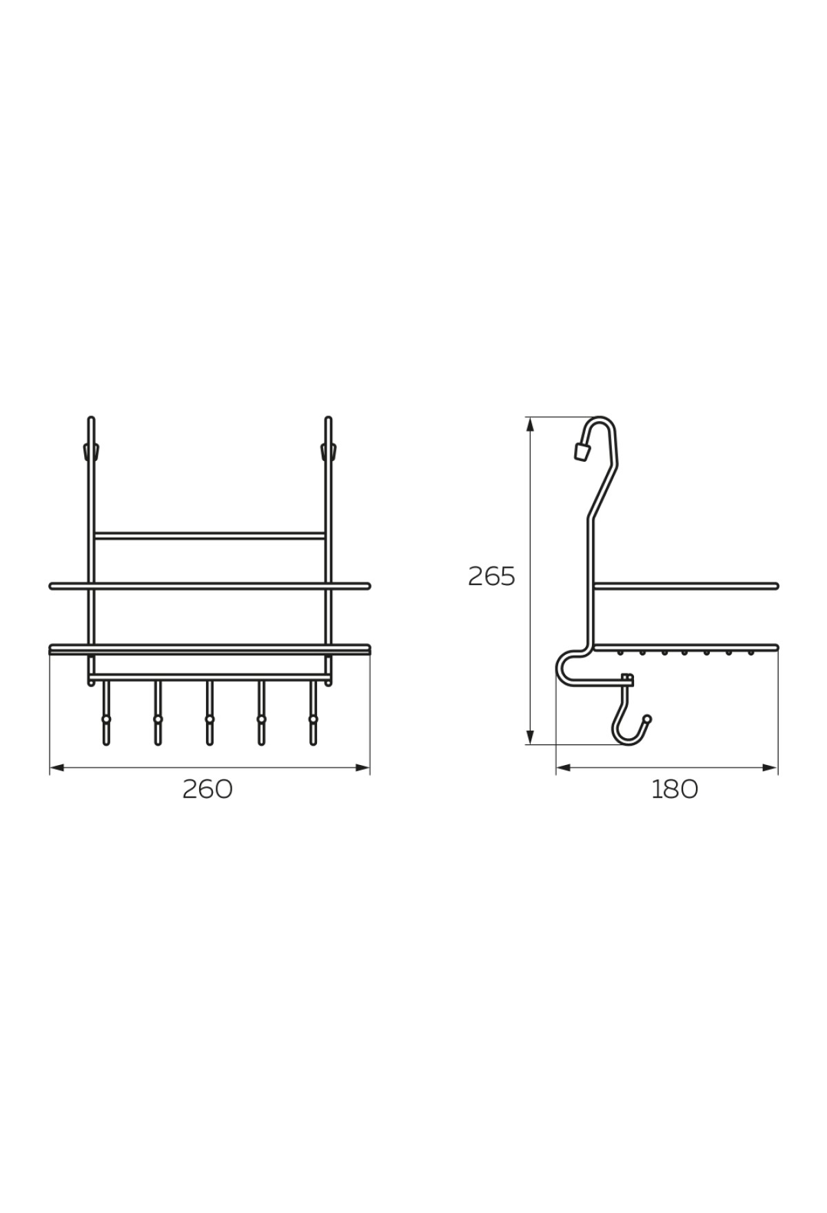 • Полка одноярусная на рейлинг большая с крючками 260*180*264мм хром МХ-403