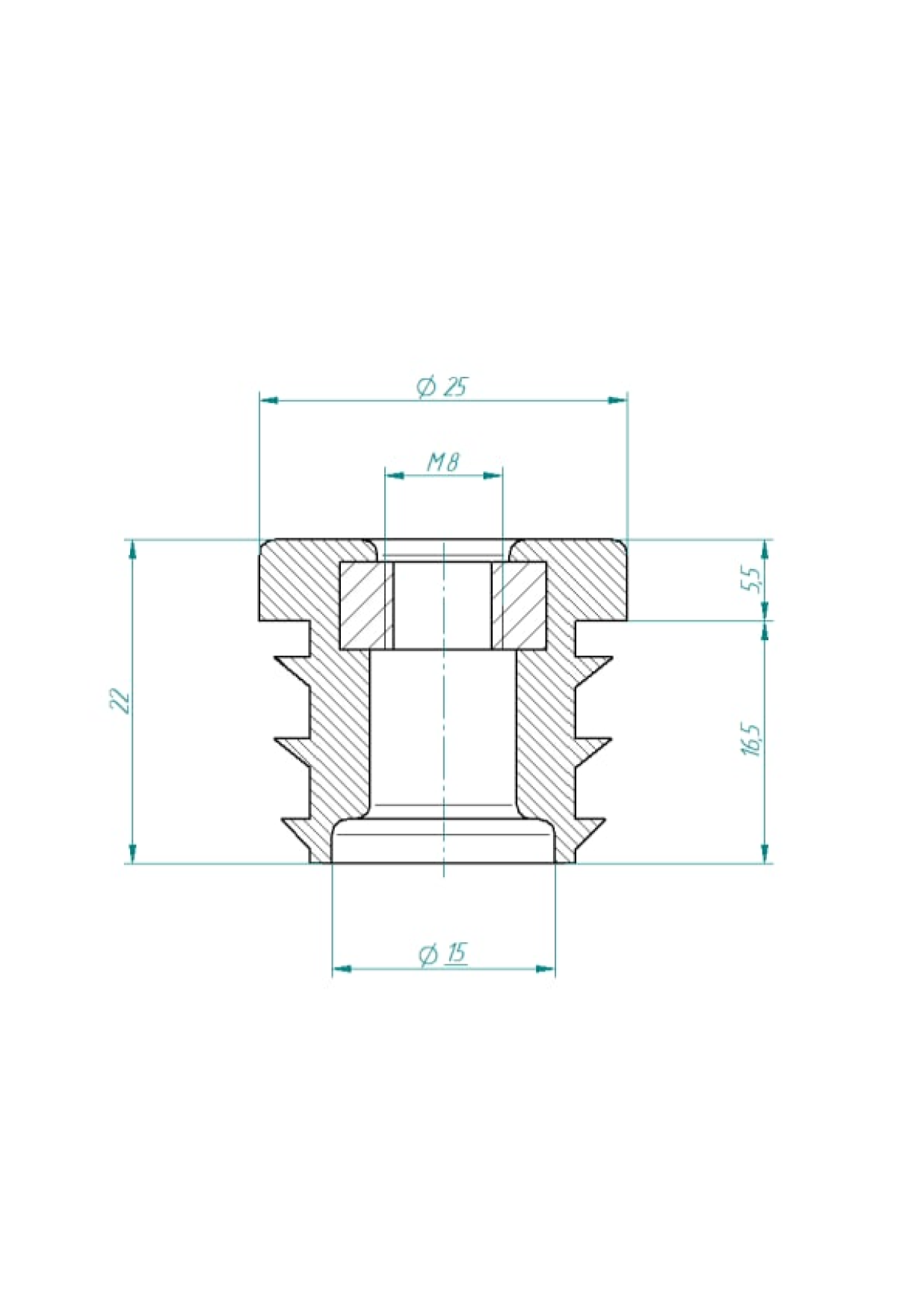 Заглушка пластиковая внутренняя с металлической резьбой М8 для труб с внешним диаметром 25 мм. Рёберная конструкция заходящей части позволяет заглушке надёжно фиксироваться в трубе. Используется вместе с резьбовой опорой и применяется для регулировки металлоконструкции по высоте.