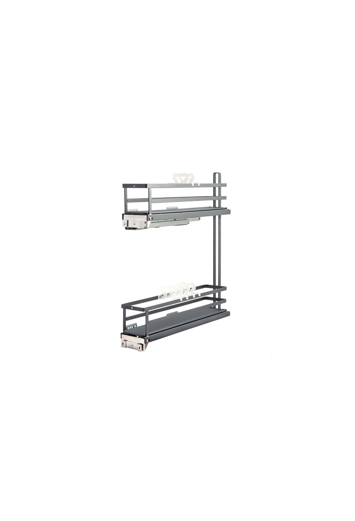 FLORA в графитовом оттенке (GRPH) – стильная бутылочница в порошковом покрытии, предназначенная для удобного хранения ёмкостей в узких модулях нижней базы кухонного гарнитура. Современное порошковое покрытие обладает повышенными прочностными и антикоррозийными свойствами.