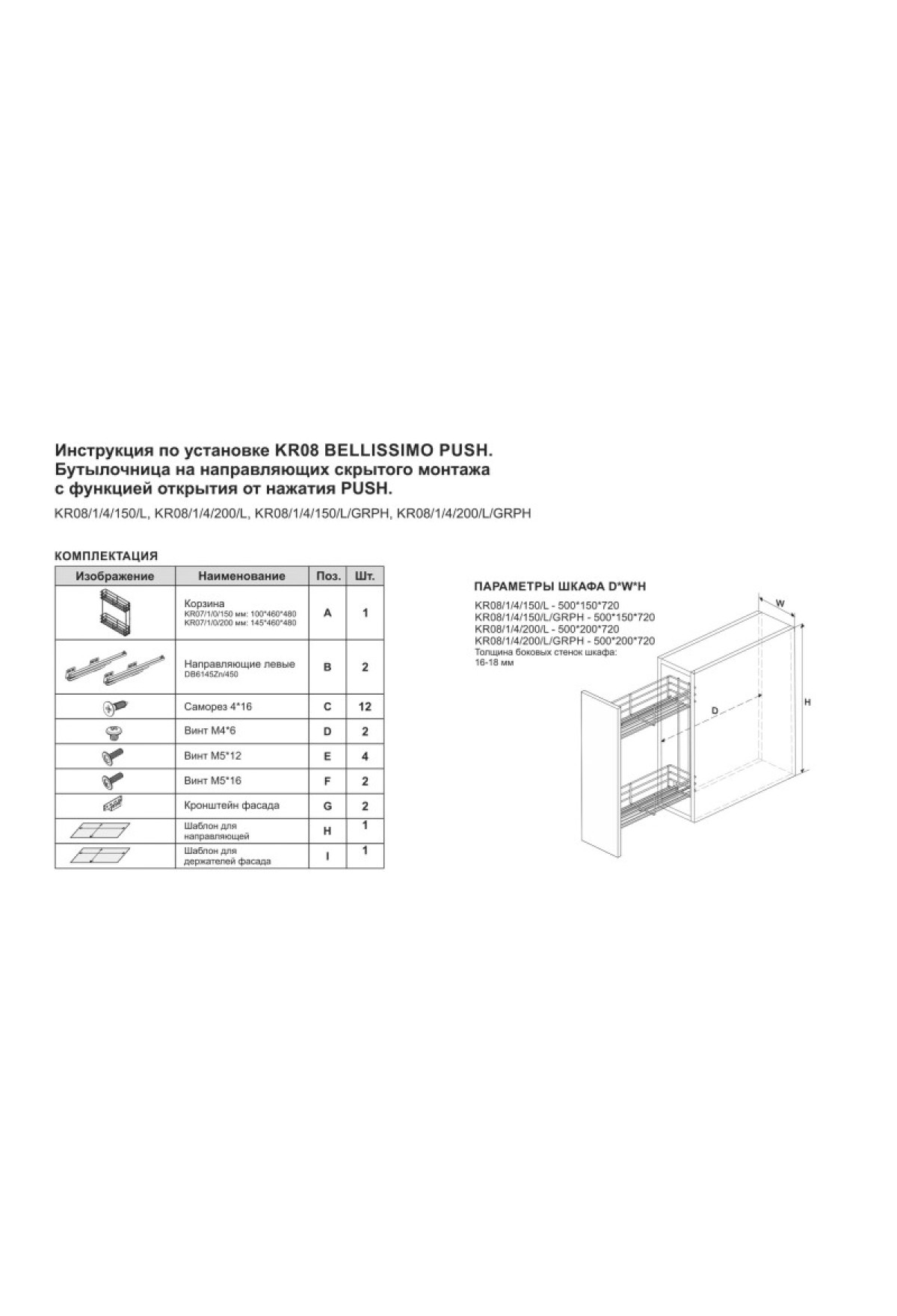 В комплекте: выдвижная бутылочница, весь необходимый крепёж, инструк