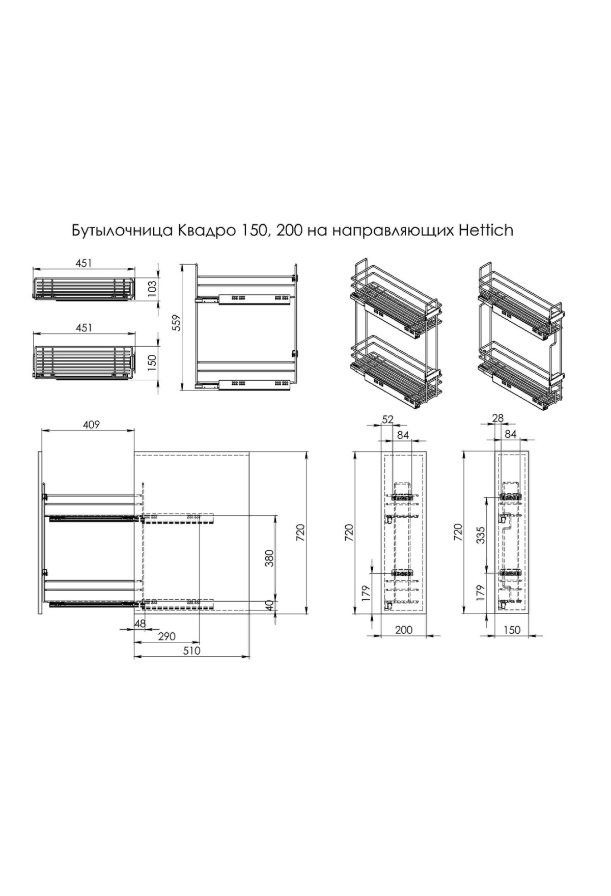 Технические характеристики Бутылочница 200мм Квадро правая 150*530*450мм БЕЗ направляющих хром