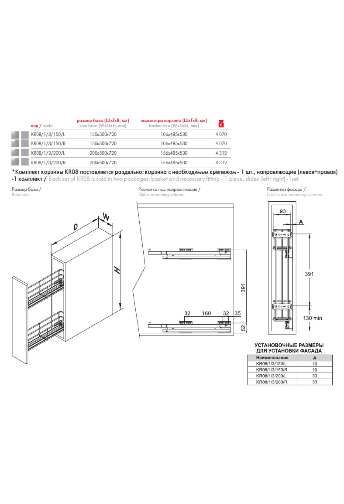| Способ закрытия (Выдвижные корзины) | С доводчиком |