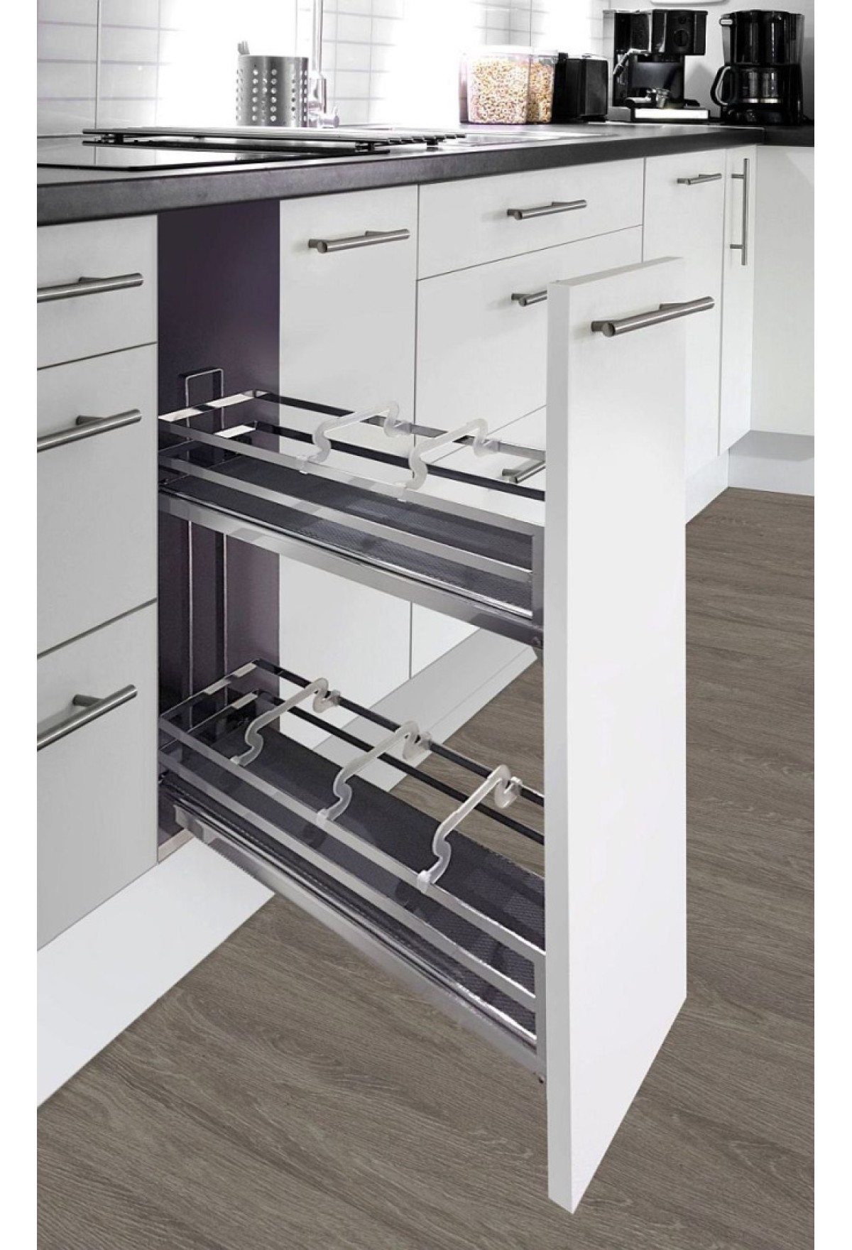Сплошное дно с антискользящим покрытием и дополнительные съемные делители FLORA гарантируют максимальную устойчивость хранимой утвари на обоих этажах. Кроме того, дно можно легко снять для чистки и мытья.