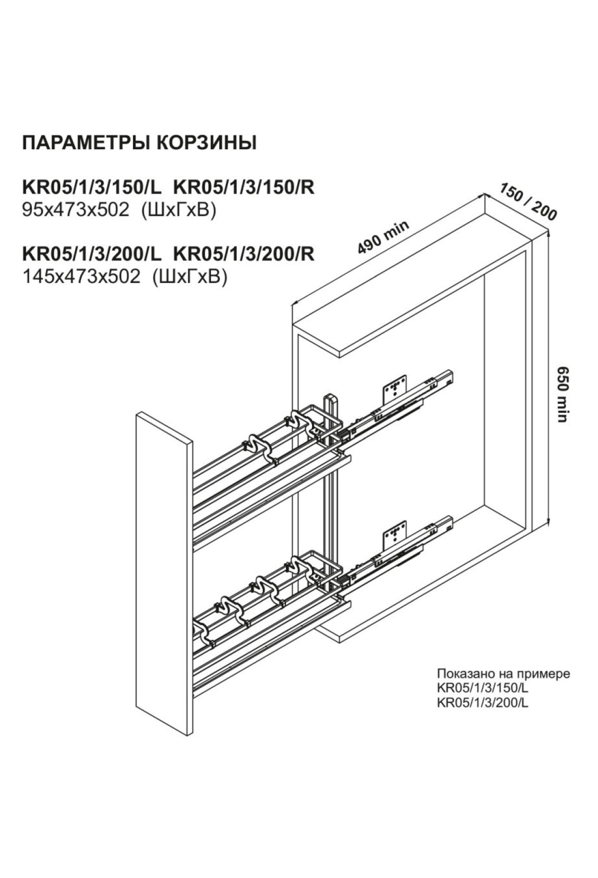 | Цвет корзины (Выдвижные корзины) | Хром |