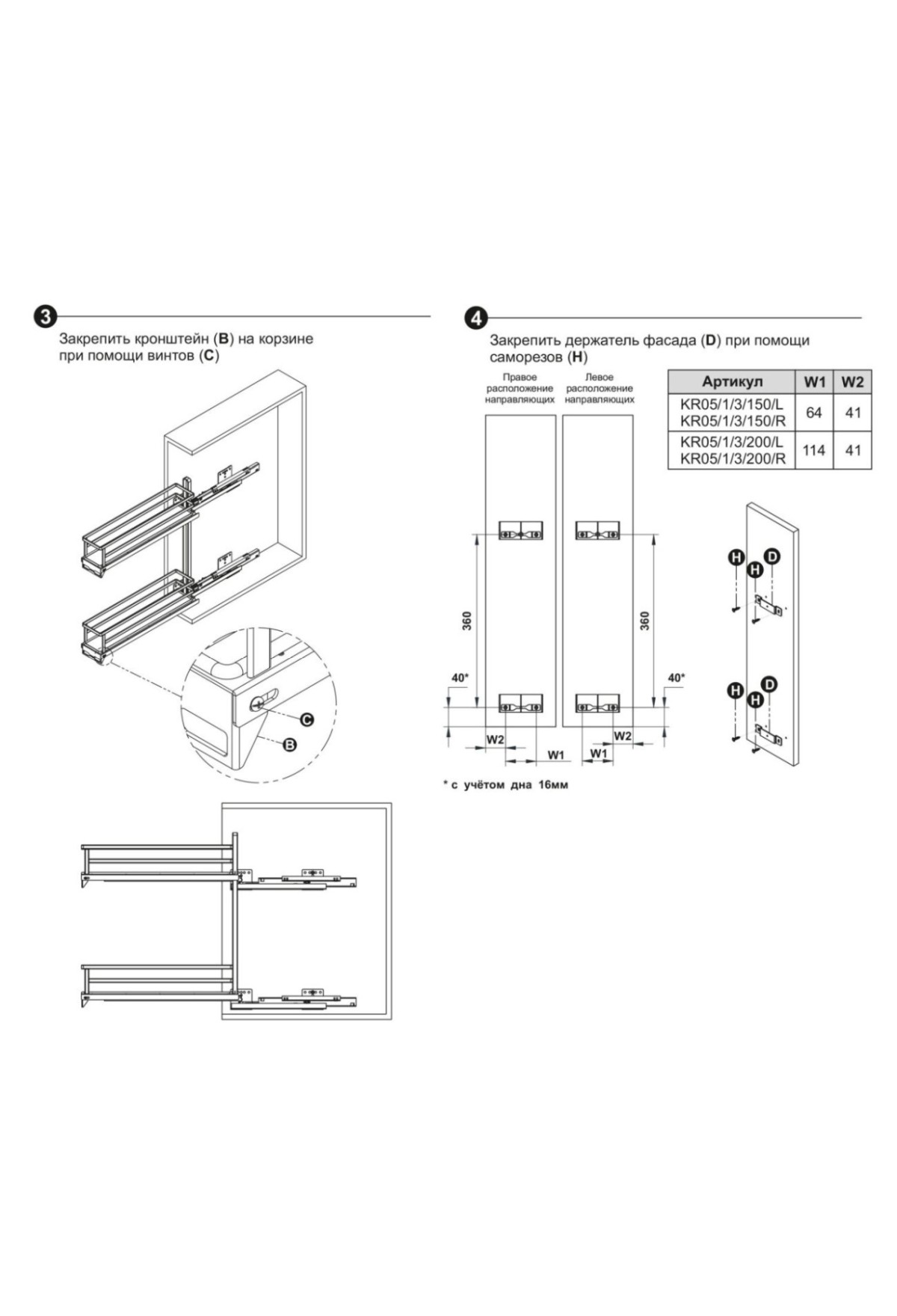 | Способ закрытия (Выдвижные корзины) | С доводчиком |