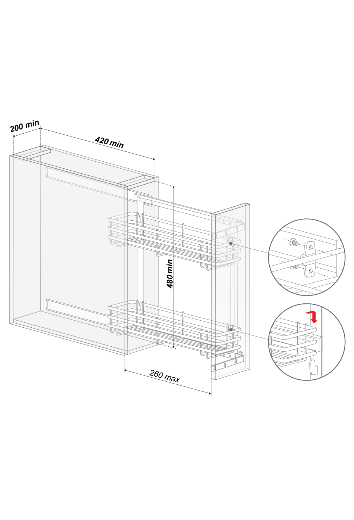 Корзина выдвижная боковая для кухни KR03/1/1/200