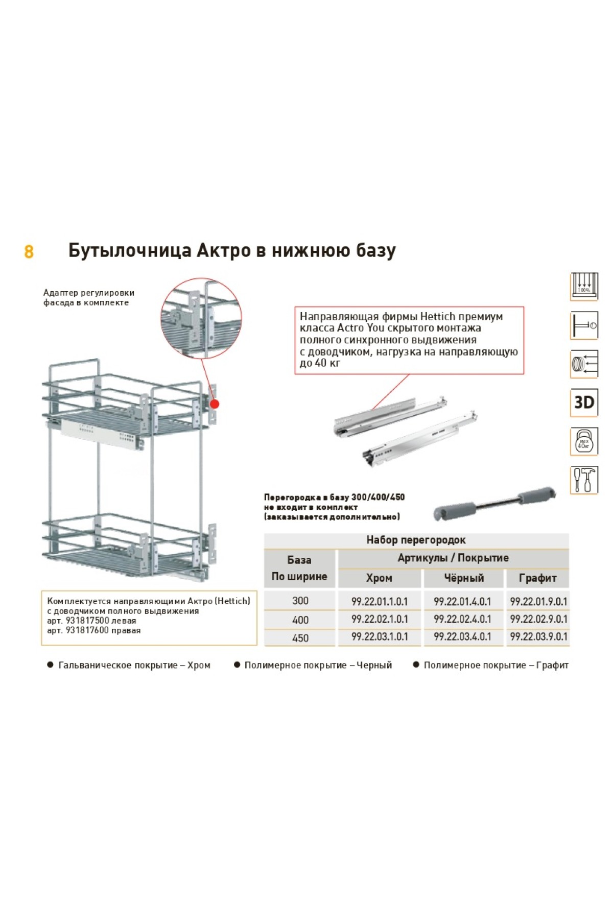 Бутылочница кухонная. АКТРО в базу 300мм БЕЗ напарвляющих