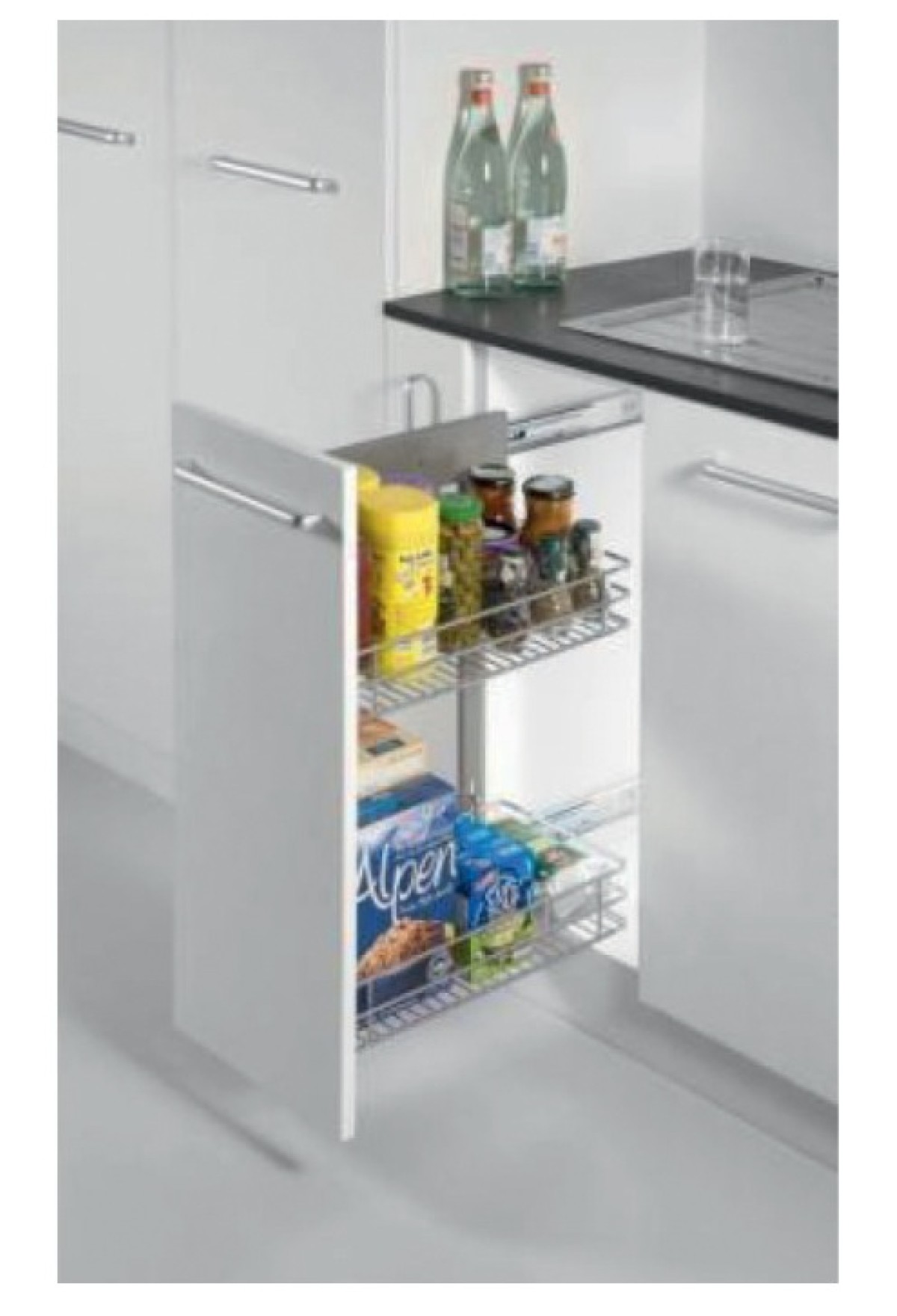 Для установки с левой рамой для выдвижных корзин на кухне.