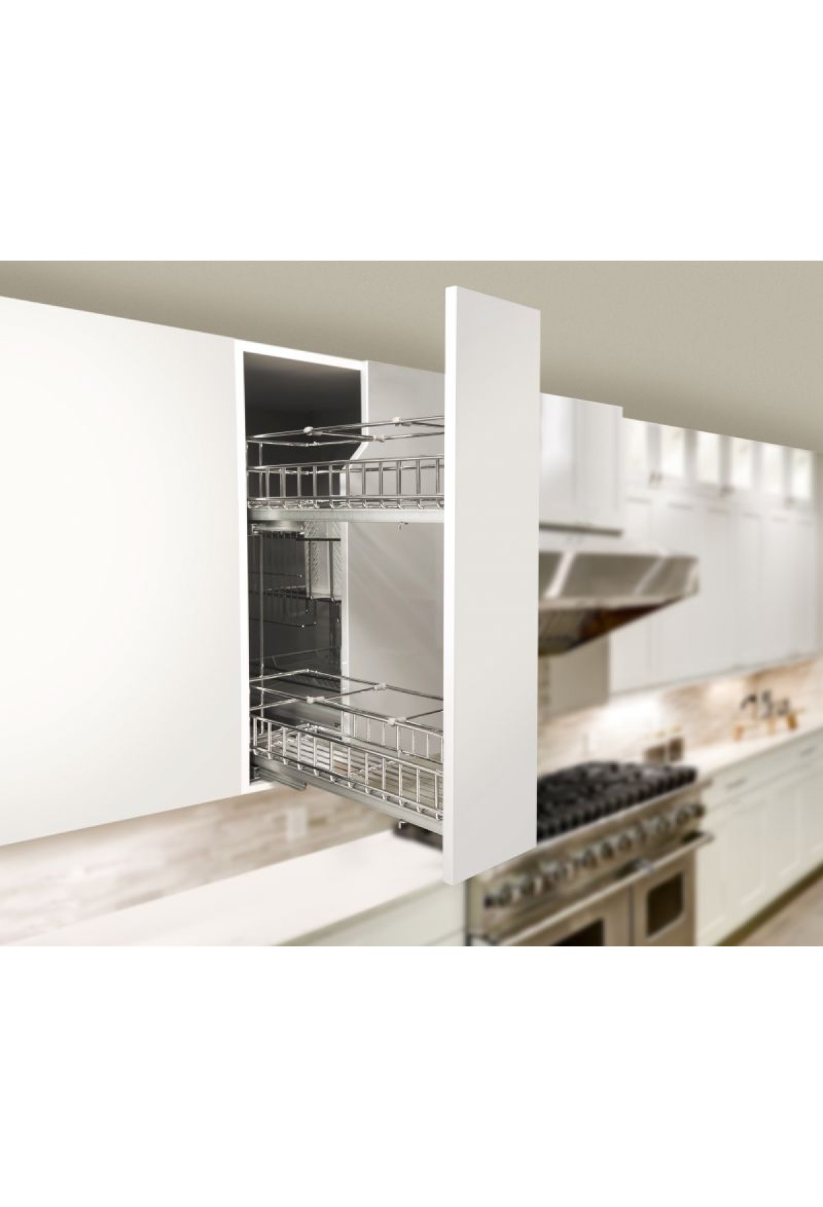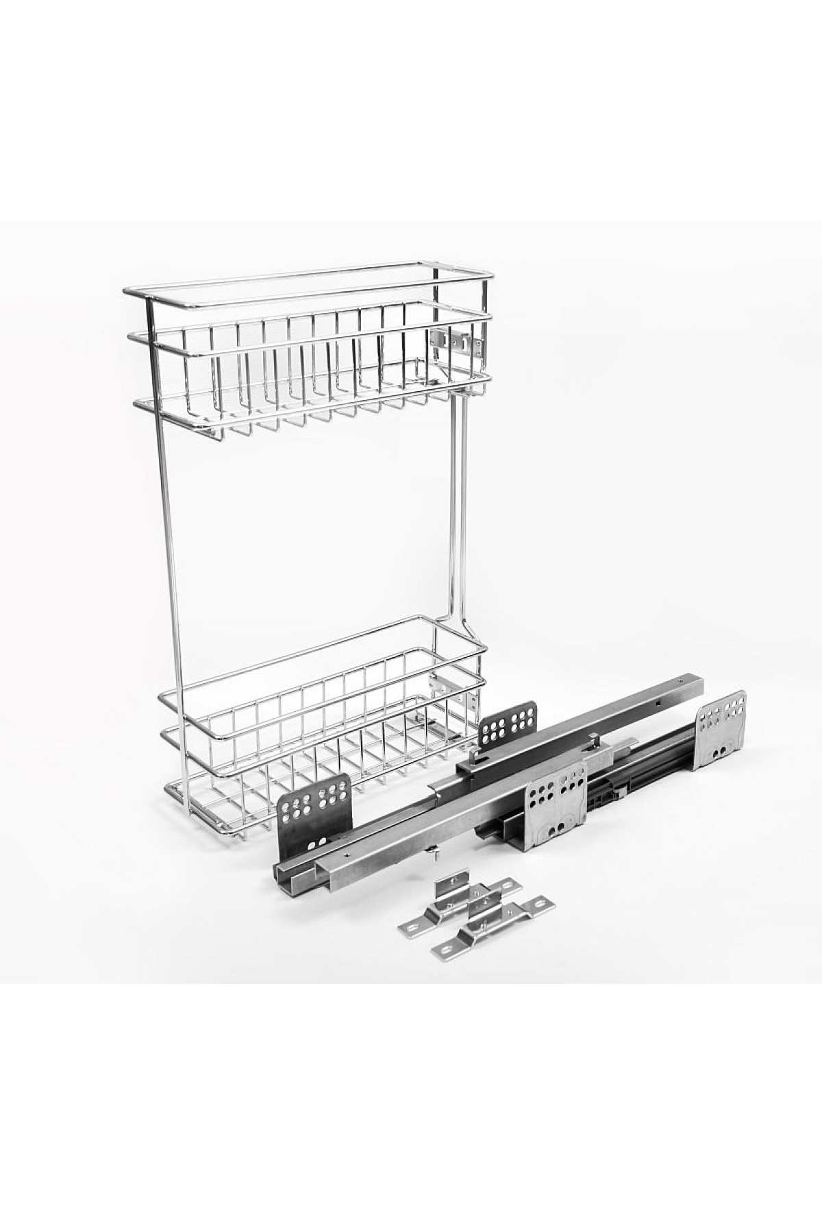 Бутылочница в верхнюю базу BELLA UP – аккуратная и практичная выдвижная корзина, предназначенная для установки в верхние модули кухонного гарнитура.В KR35 удобно расположить баночки со специями, бутылочки с уксусом, маслами и соусами – иными словами все, что необходимо иметь под рукой во время готовки или хранить вдали от детей.