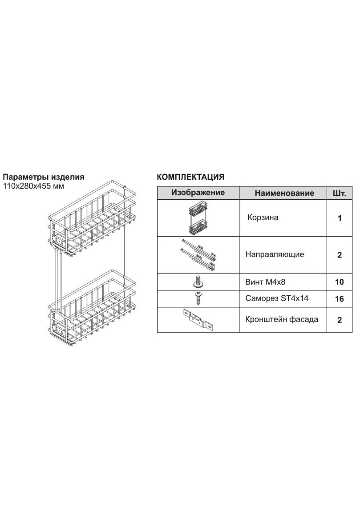 | Цвет корзины (Выдвижные корзины) | Хром |