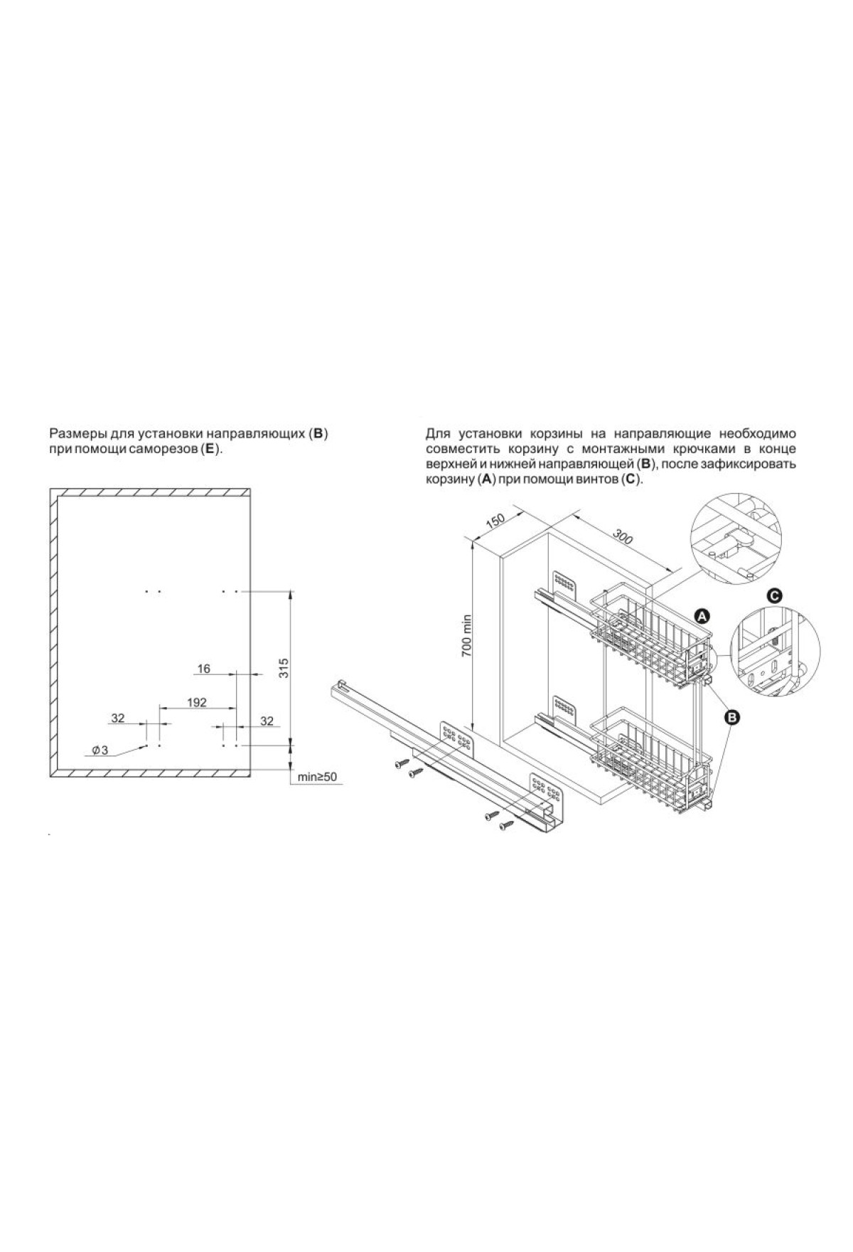Корзина комплектуется современными направляющими скрытого монтажа, которые обеспечивают стабильный, бесшумный ход и плавное доведение.
