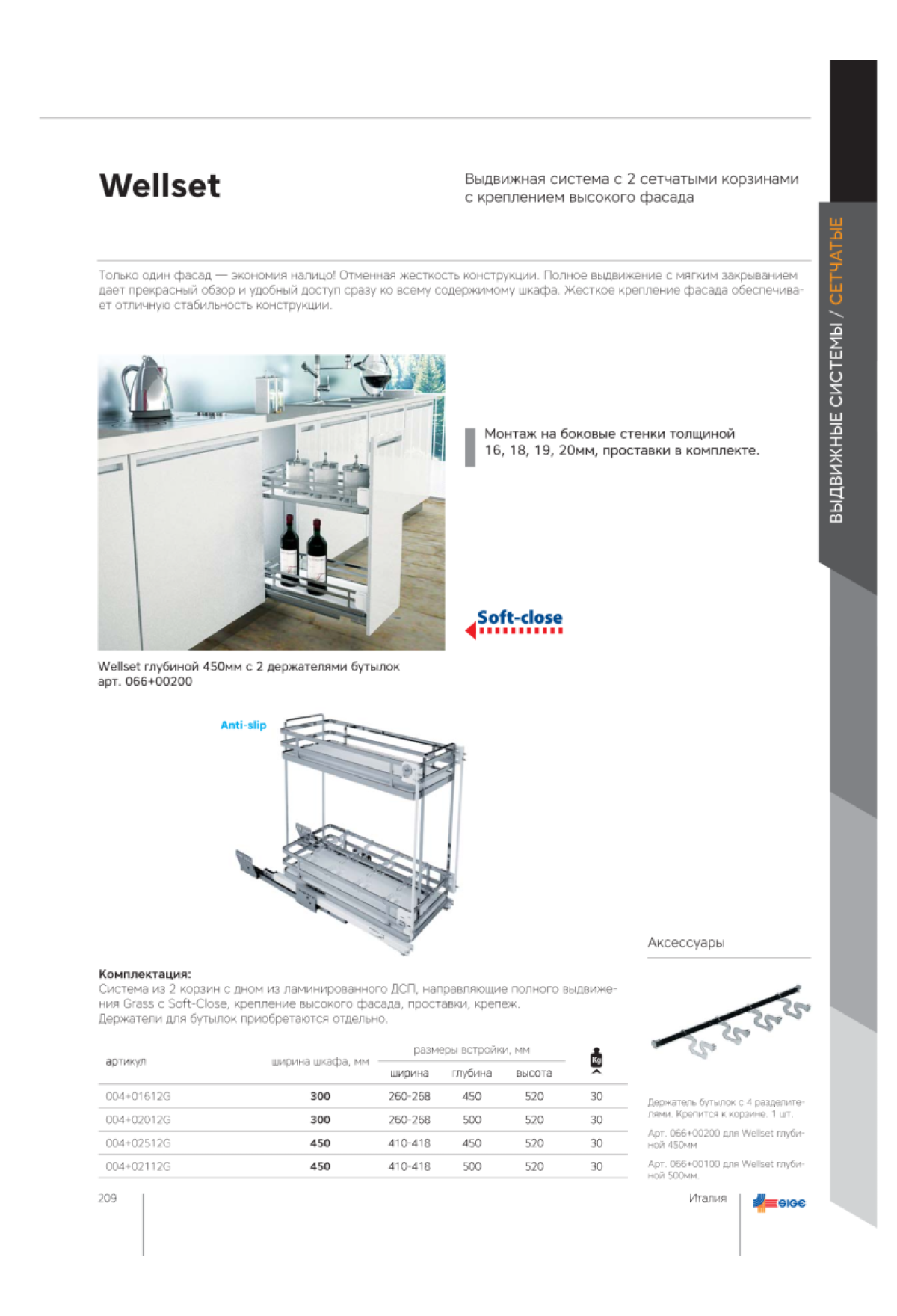 Технические характеристики держатель бутылок SIGE с 4-мя разделителями для шкафа 500мм, пластик / 066+00100