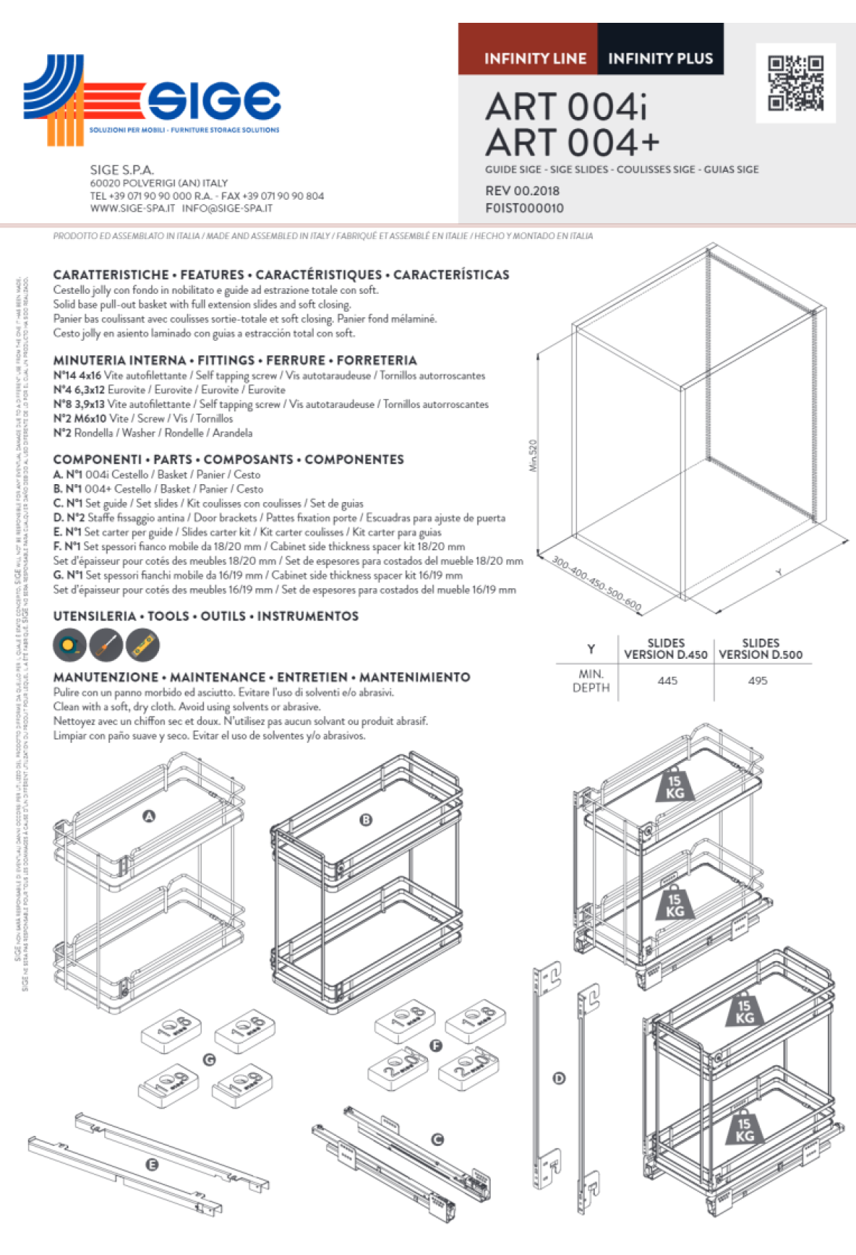 Комплектация: система с 2 корзинами ( плоский пруток, хромированная сталь, дно из ЛДСП), направляющие полного выдвижения Grass с функцией мягкого закрывания, крепление высокого фасада, адаптеры для установки системы на стенки 16,18-20мм, крепеж.
