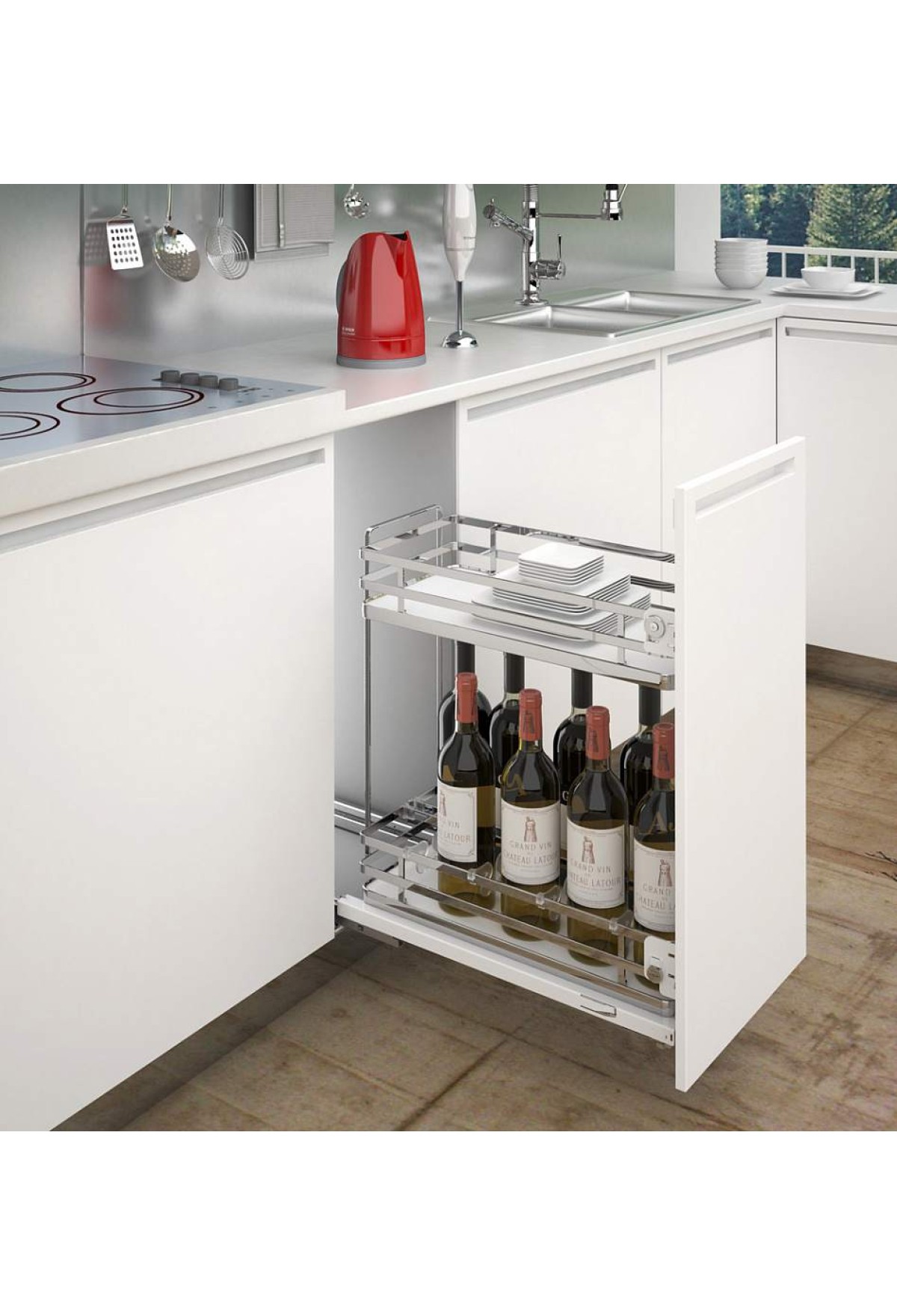 Выдвижная система с 2-мя корзинами и направляющими полного выдвижения Grass с Soft-Close. Крепление высокого фасада в комплекте. Отменная жесткость конструкции. Полное выдвижение с мягким закрыванием. Дно корзин из ламинированного ДСП.