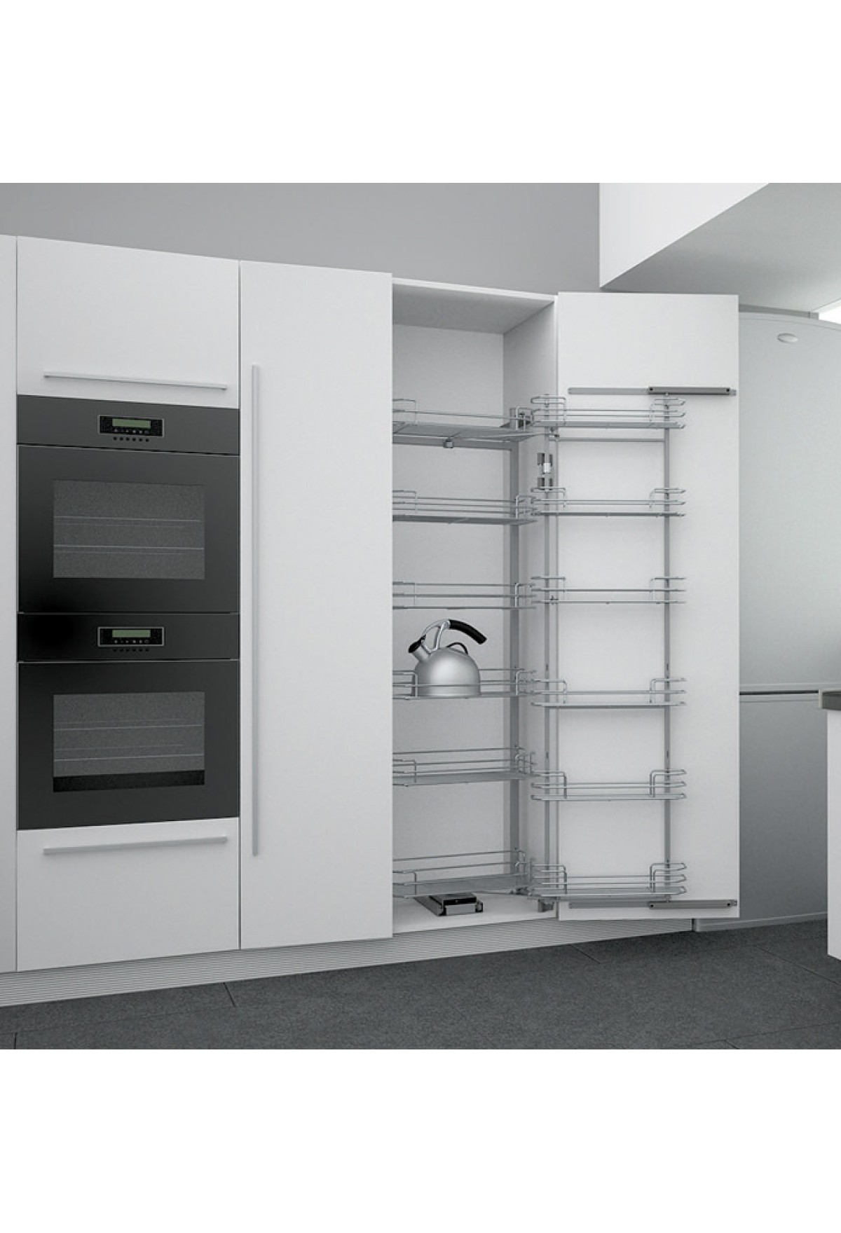 Самая высокая эффективность использования пространства в распашном высоком шкафу. Прекрасный обзор и легкий доступ ко всему содержимому благодаря разделению пространства шкафа. Специальная конструкция исключает нагрузку на фасад, что облегчает эксплуатацию и продлевает срок службы мебели.