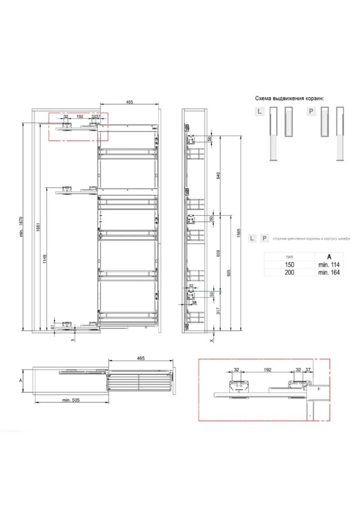 | Способ закрытия (Выдвижные корзины) | С доводчиком |