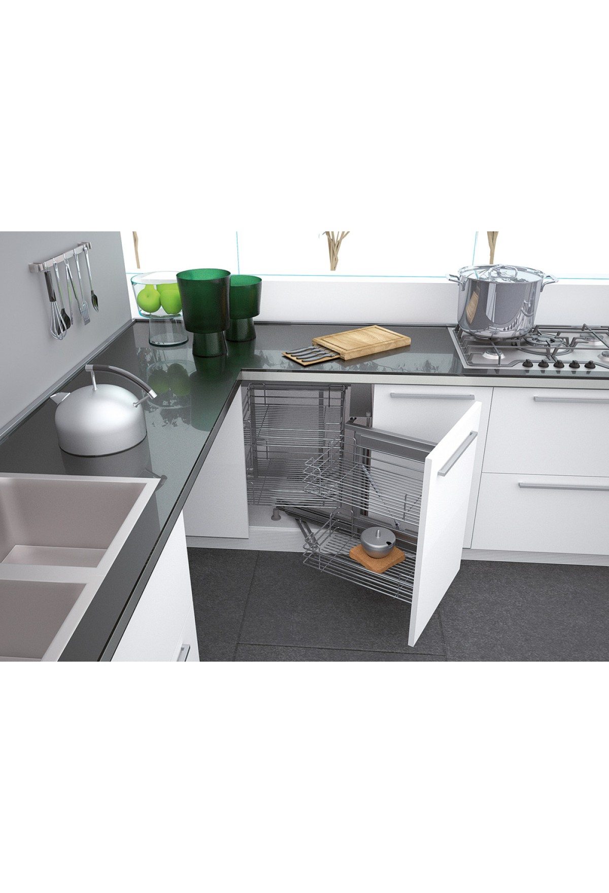 Комплектация:выдвижная система "волшебный уголок" с газовым лифтом, 4 сетчатые корзины, универсальное крепление для фасада 450, 500, 600мм, ограничительный стопор, шаблон.