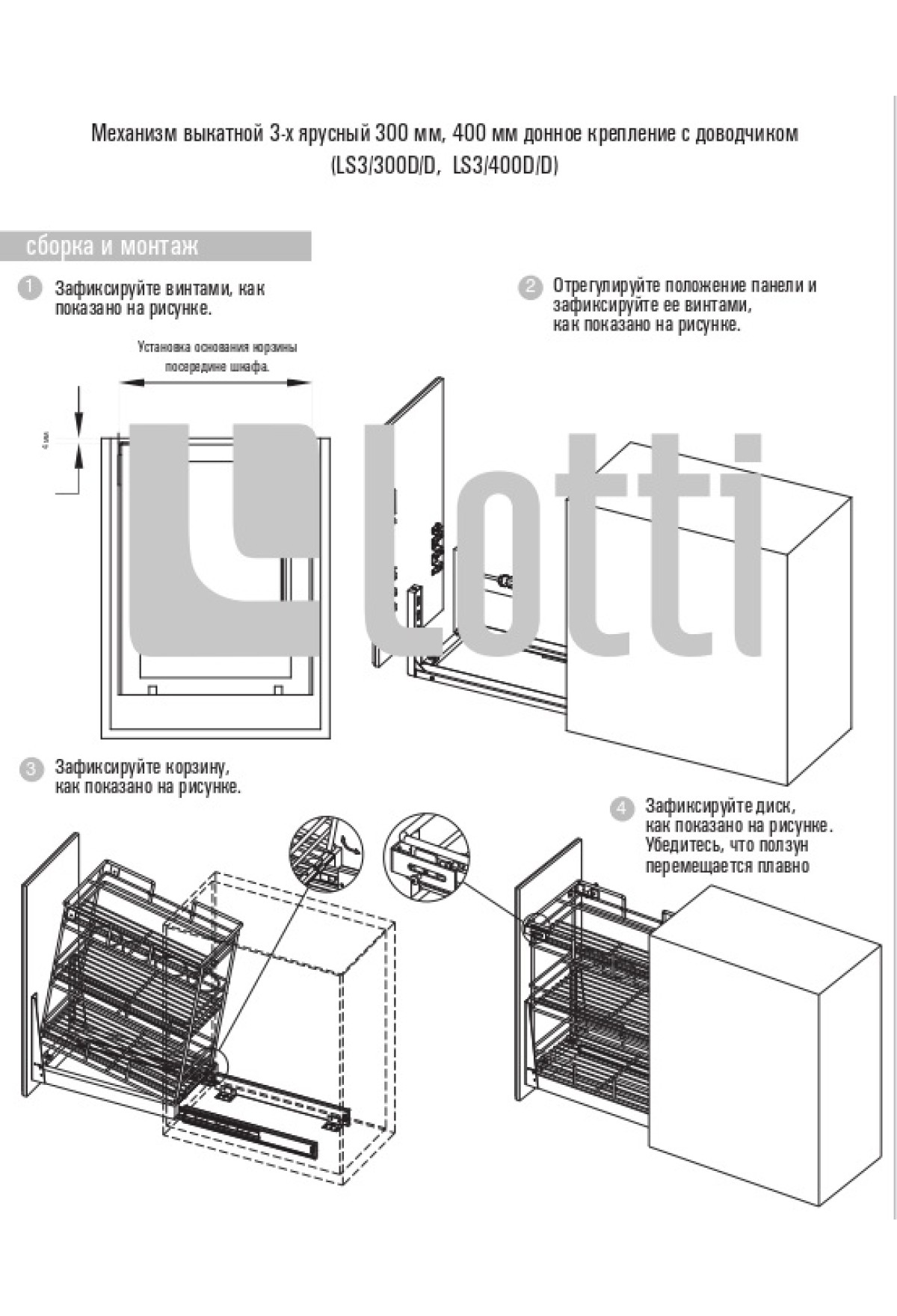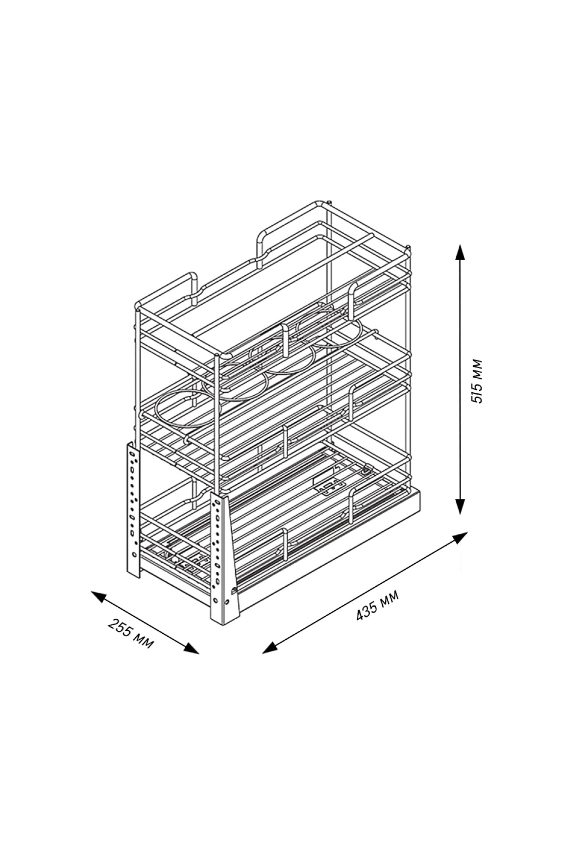 Технические характеристики Выдвижная корзина 300мм с доводчиком 3 полки нижнее крепление хром LS3/300D/D Lotti