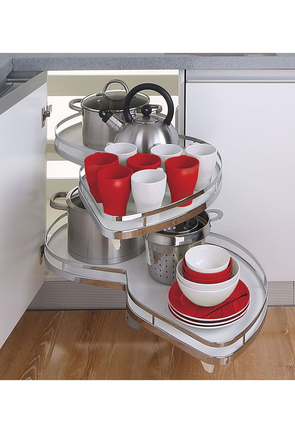«Волшебный уголок» Lotus – это стильная и эргономичная многофункциональная корзина, предназначенная для хранения кухонной утвари: посуды, кастрюль, бытовой техники и пр. в угловых модулях размером 900-1000 мм. Модель представлена в двух вариантах: для левых и правых угловых шкафов.
