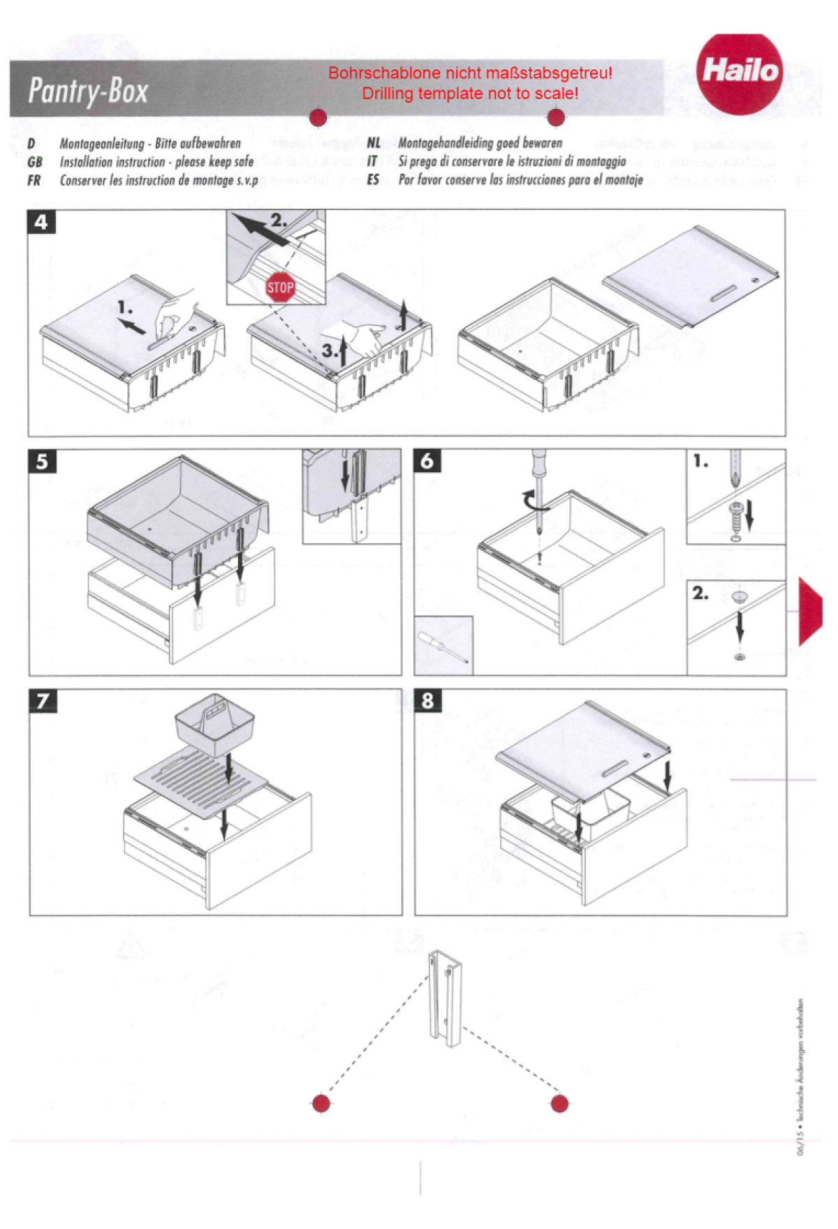 Примечание: устанавливается в готовый выдвижной ящик, крепится к фасаду. Минимальная глубина шкафа 500мм.