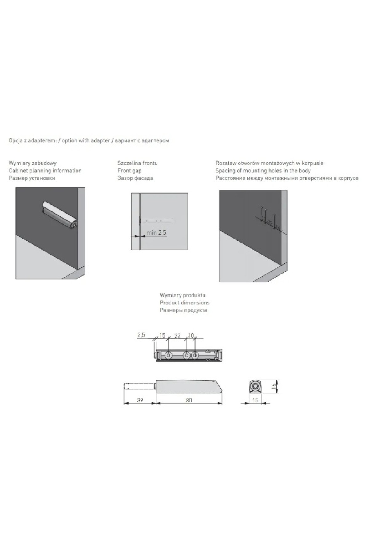 Каучуковый наконечник способствует бесшумному и мягкому закрыванию фасада.