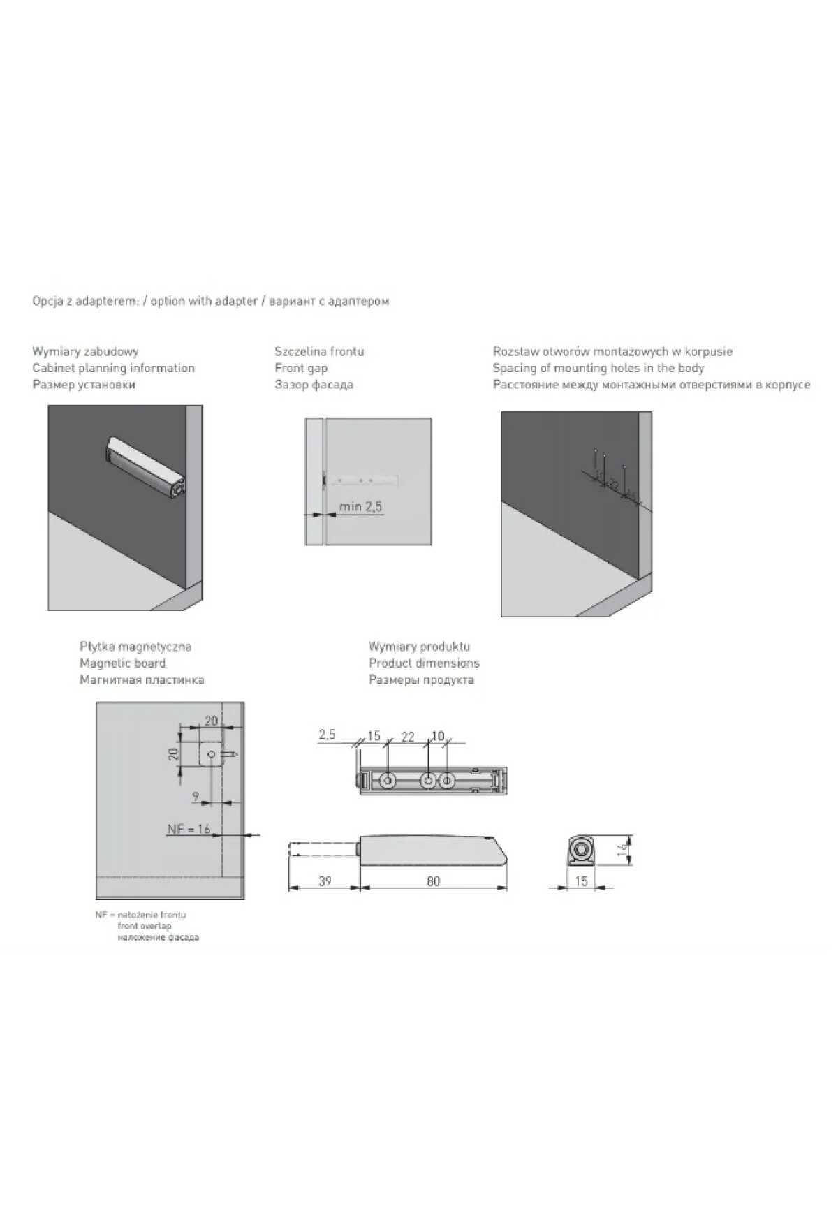 Магнитный наконечник обеспечивает дополнительную фиксацию дверцы или ящика в закрытом состоянии.