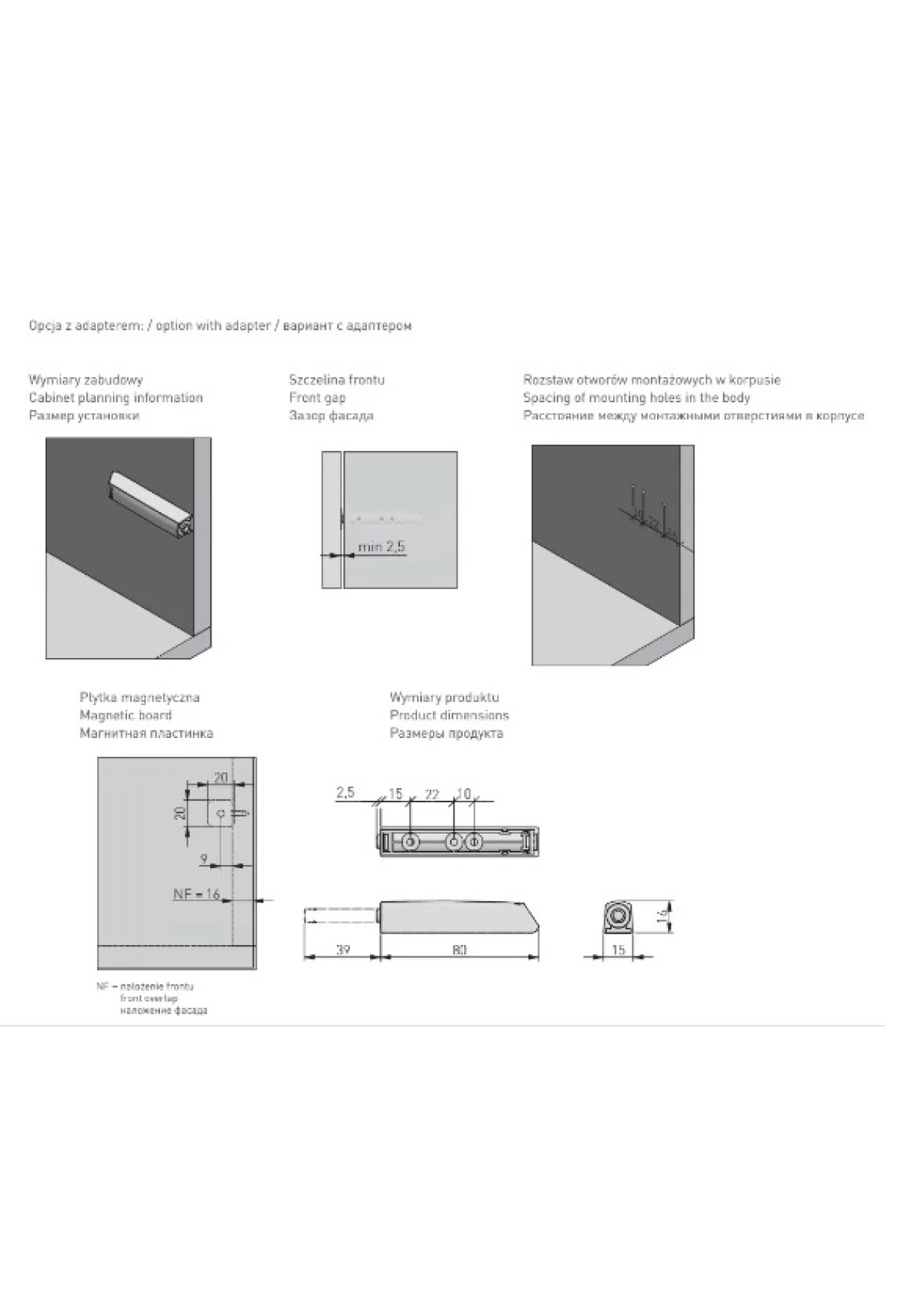 На складе Код товара: LV-49040 Крепление к сплошному фасаду механизма Huwilift Duo Standard/Forte под евровинт 373.66.036 Hafele
