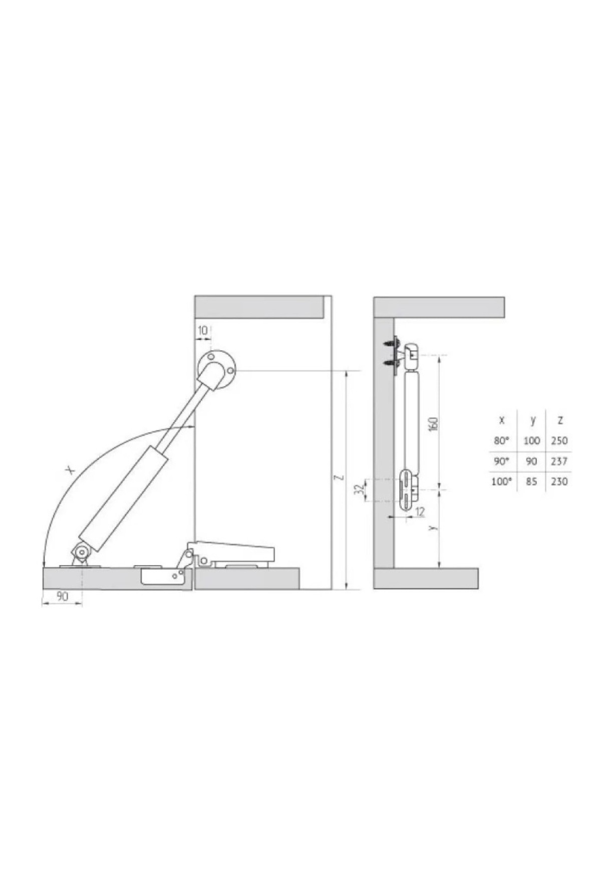 Газовый лифт предназначен для открывания фасада вниз дверок горизонтального открывания.