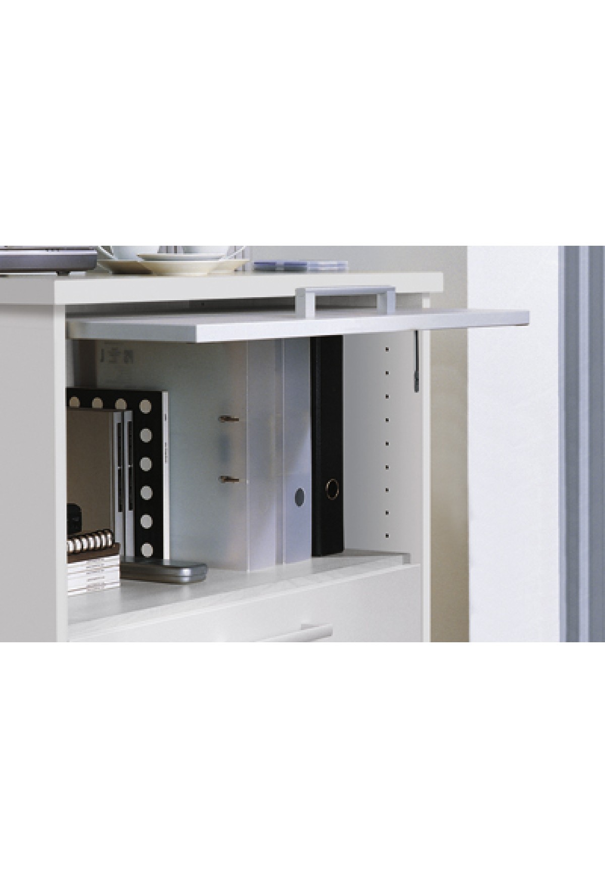 Вкладная створка в открытом состоянии почти полностью задвигается внутрь корпуса.