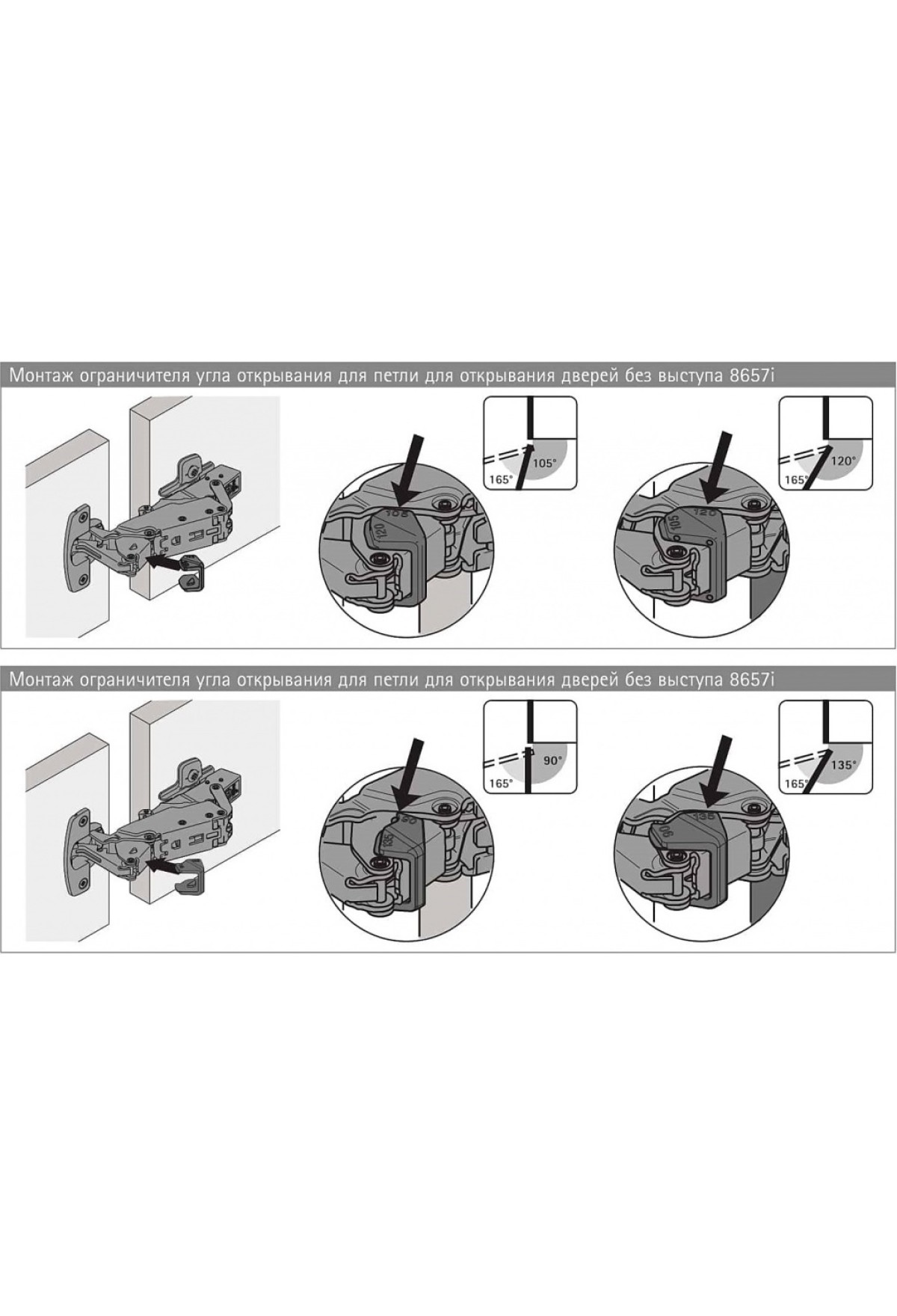 Ограничитель угла открывания петель Sensys 8657i c 90 до 135 градусов антрацит 9090864 Hettich